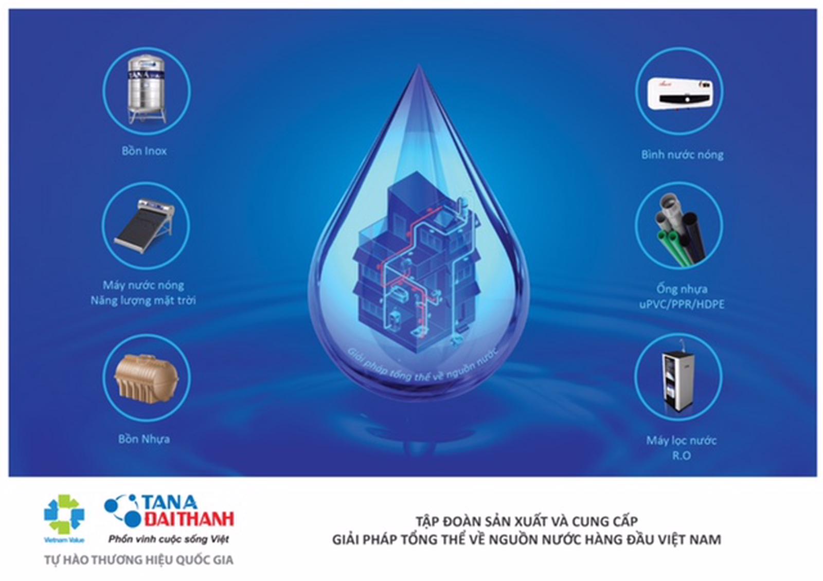 Tân Á Đại Thành tự hào là Tập đoàn sản xuất và cung cấp giải pháp tổng thể về nguồn nước hàng đầu Việt Nam, với các sản phẩm liên quan đến nguồn nước cho hộ gia đình cũng như các công trình bao gồm: Bồn chứa nước inox Tân Á, Bồn nhựa đa năng Tân Á, Máy nước nóng năng lượng mặt trời Tân Á, Máy lọc nước R.O Tân Á, Bình nước nóng Rossi, Ống nhựa Stroman - Đức, Máy bơm và các thiết bị nhà tắm như sen vòi, bồn tắm...