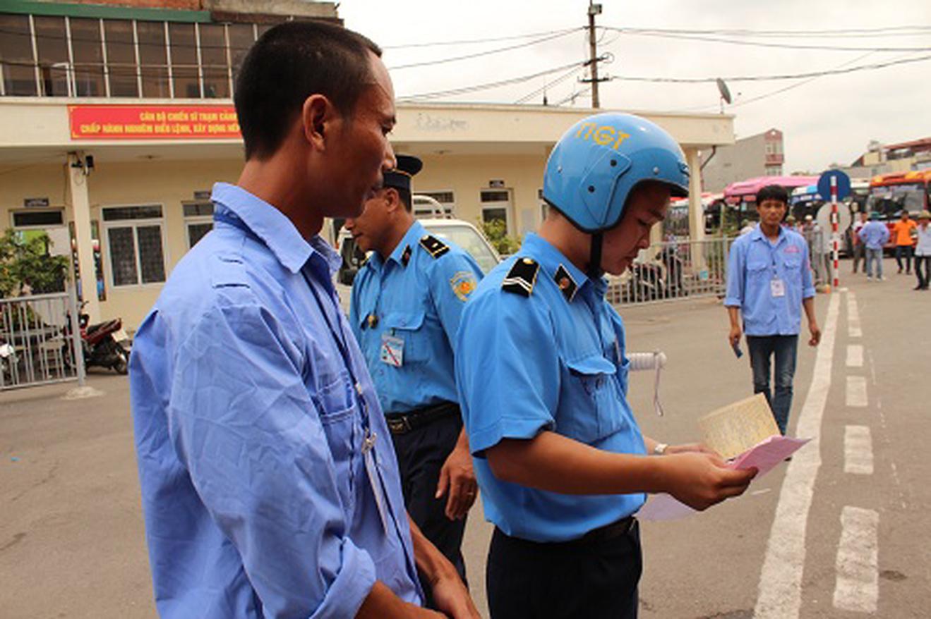 Thanh tra GTVT Hà Nội kiểm tra lái xe trước khi xuất bến. Ảnh: OH