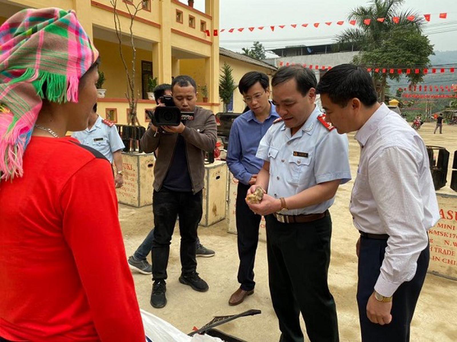 Ông Trần Nhật Tân, Chánh Thanh tra tỉnh Yên Bái kiểm tra con giống. Ảnh: BB