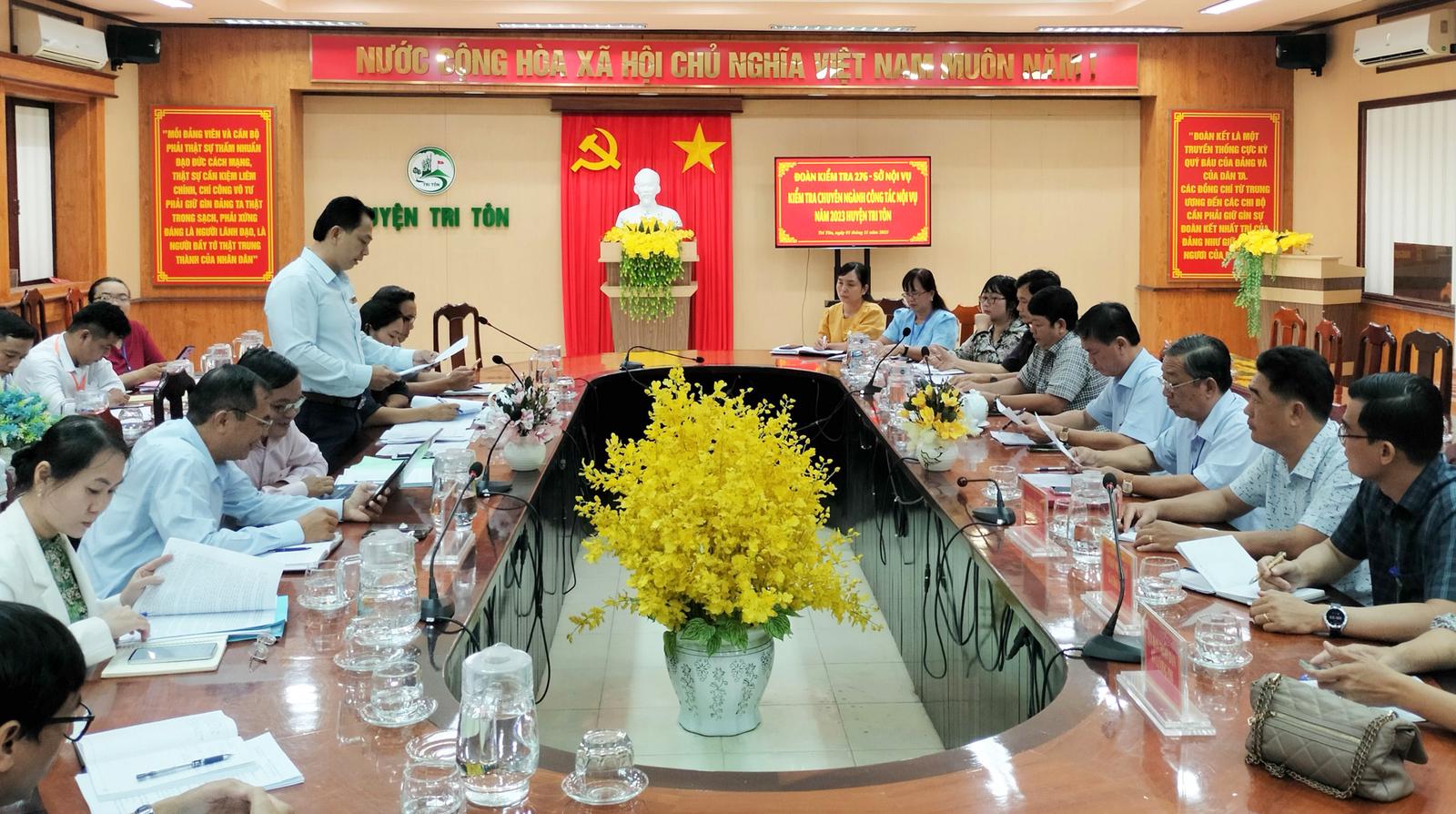 Kiểm tra chuyên ngành công tác nội vụ năm 2023 tại huyện Tri Tôn. Ảnh: sonoivu.angiang.gov.vn