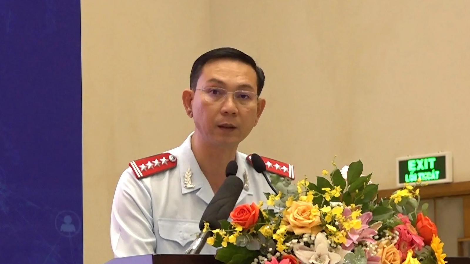 Chánh Thanh tra tỉnh Bùi Duy Hiền phát biểu tại Hội nghị Tổng kết công tác năm 2022 của ngành Thanh tra tỉnh Bình Dương. Ảnh: Chu Tuấn