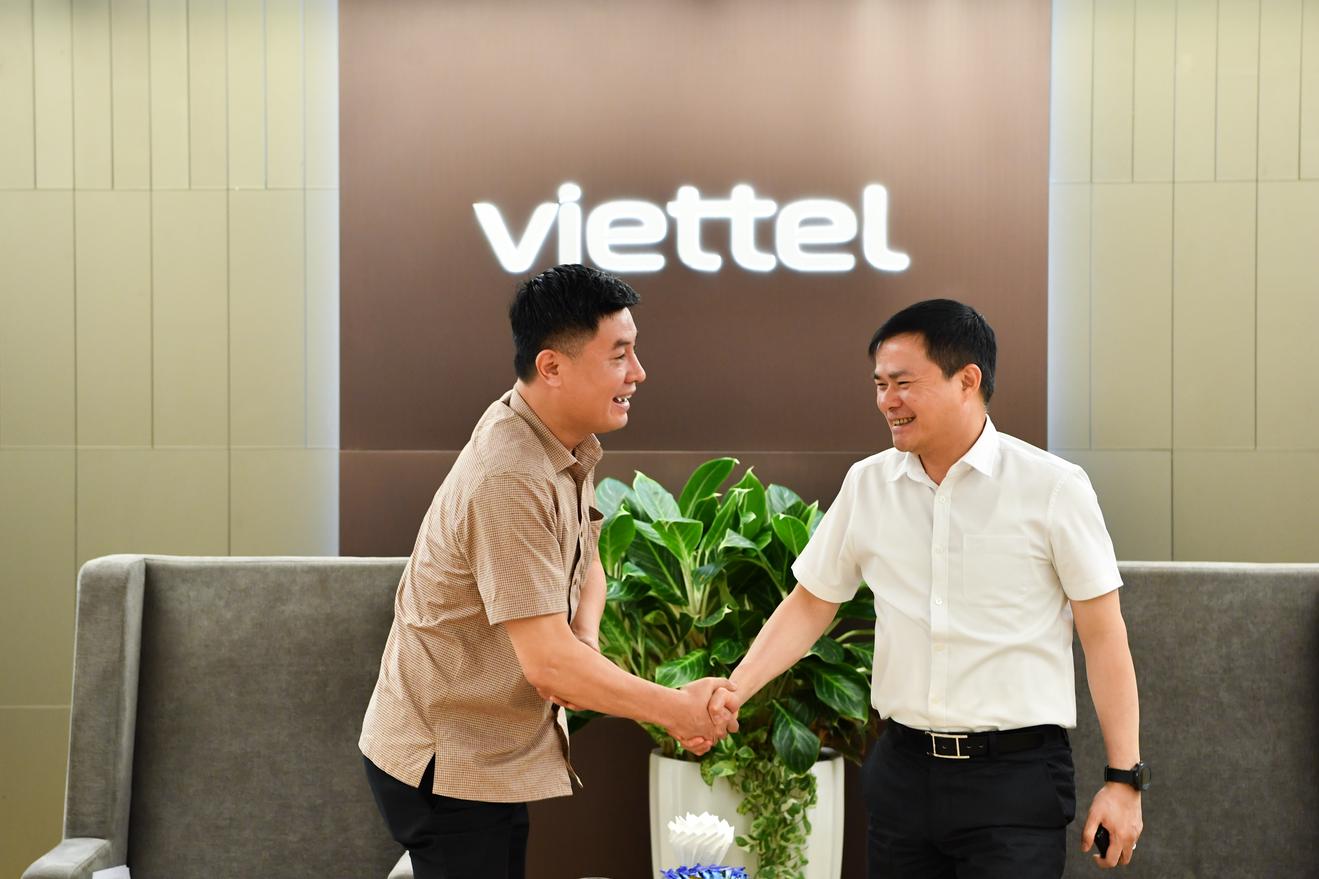 Phó Tổng Thanh tra Nguyễn Văn Cường và Chủ tịch, Tổng Giám đốc Tập đoàn Viettel Tào Đức Thắng mong muốn 2 bên cùng nhau tạo điều kiện và hợp tác về công nghệ thông tin. Ảnh: TH