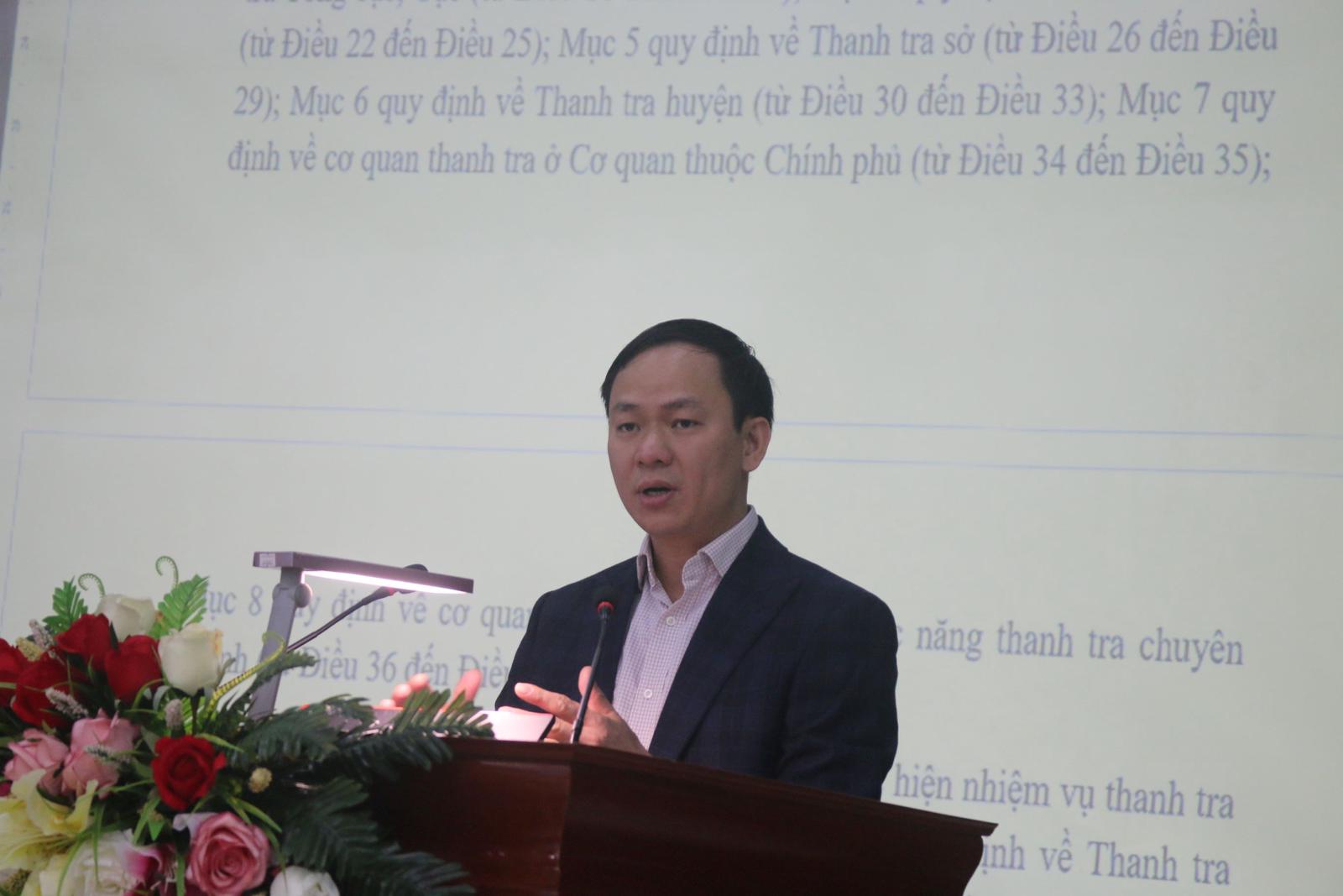 Ông Trần Văn Long, Phó Vụ trưởng Vụ Pháp chế, Thanh tra Chính phủ trình bày chuyên đề Hướng dẫn thực hiện Luật Thanh tra năm 2022; các nghị định, thông tư hướng dẫn thi hành luật. Ảnh: Hoàng Nam