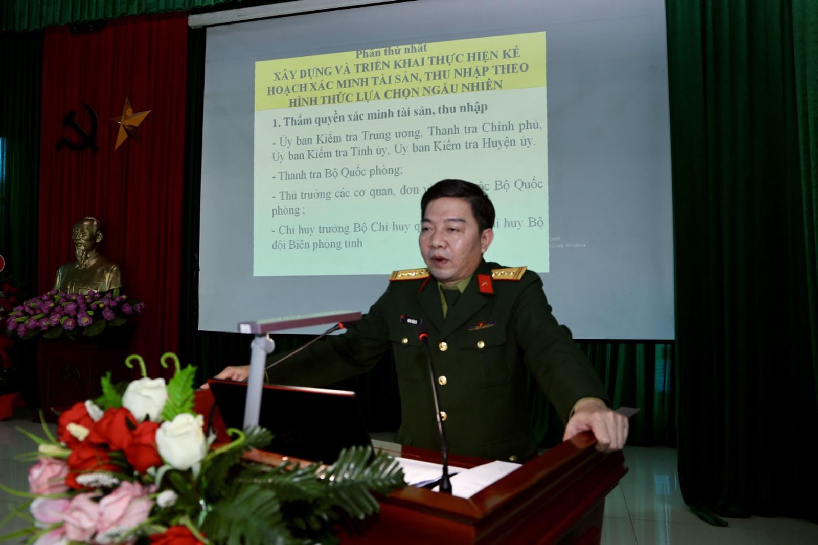 Đại tá Đoàn Tuấn Tú, Trưởng ban Thường trực 1389, Thanh tra Bộ Quốc phòng, hướng dẫn trình tự, thủ tục, nội dung, phương pháp tiến hành xác minh tài sản thu nhập. Ảnh: Vũ Huỳnh