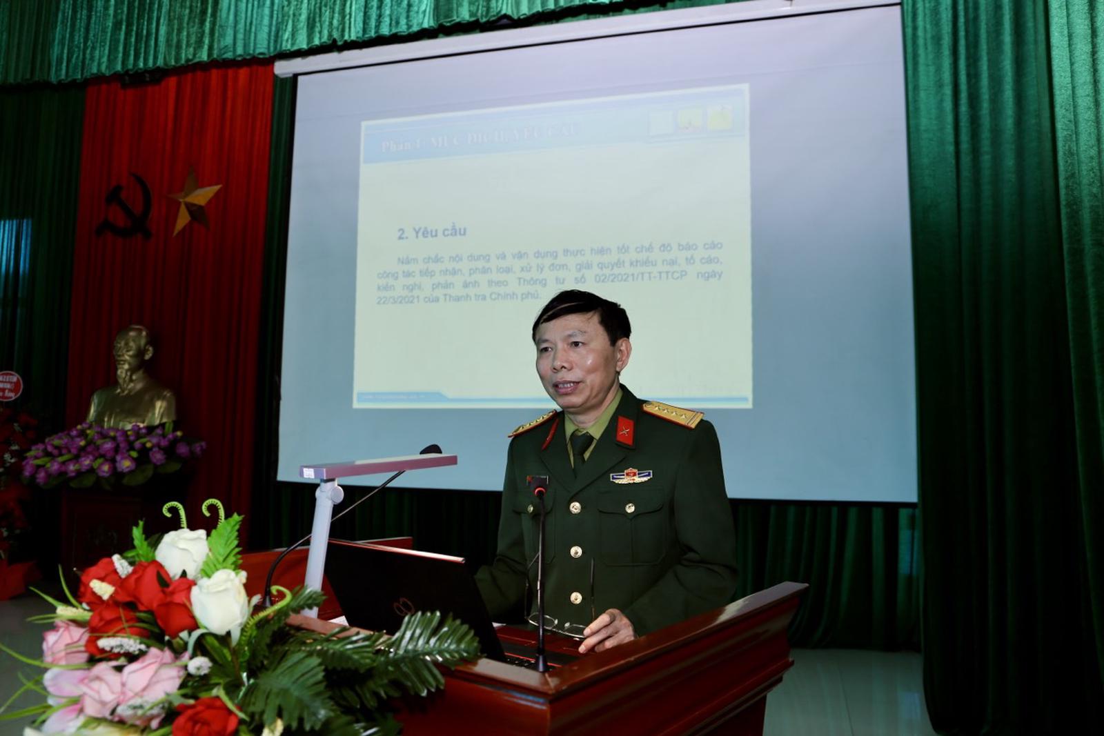 Đại tá Nguyễn Xuân Lương, Phó Chánh Thanh tra Xét khiếu tố, Thanh tra Bộ Quốc phòng, hướng dẫn thực hiện báo cáo công tác tiếp nhận, xử lý đơn, giải quyết khiếu nại, tố cáo theo Thông tư số 02/2021/TTCP ngày 22/03/2021 của Thanh tra Chính phủ. Ảnh: Vũ Huỳnh