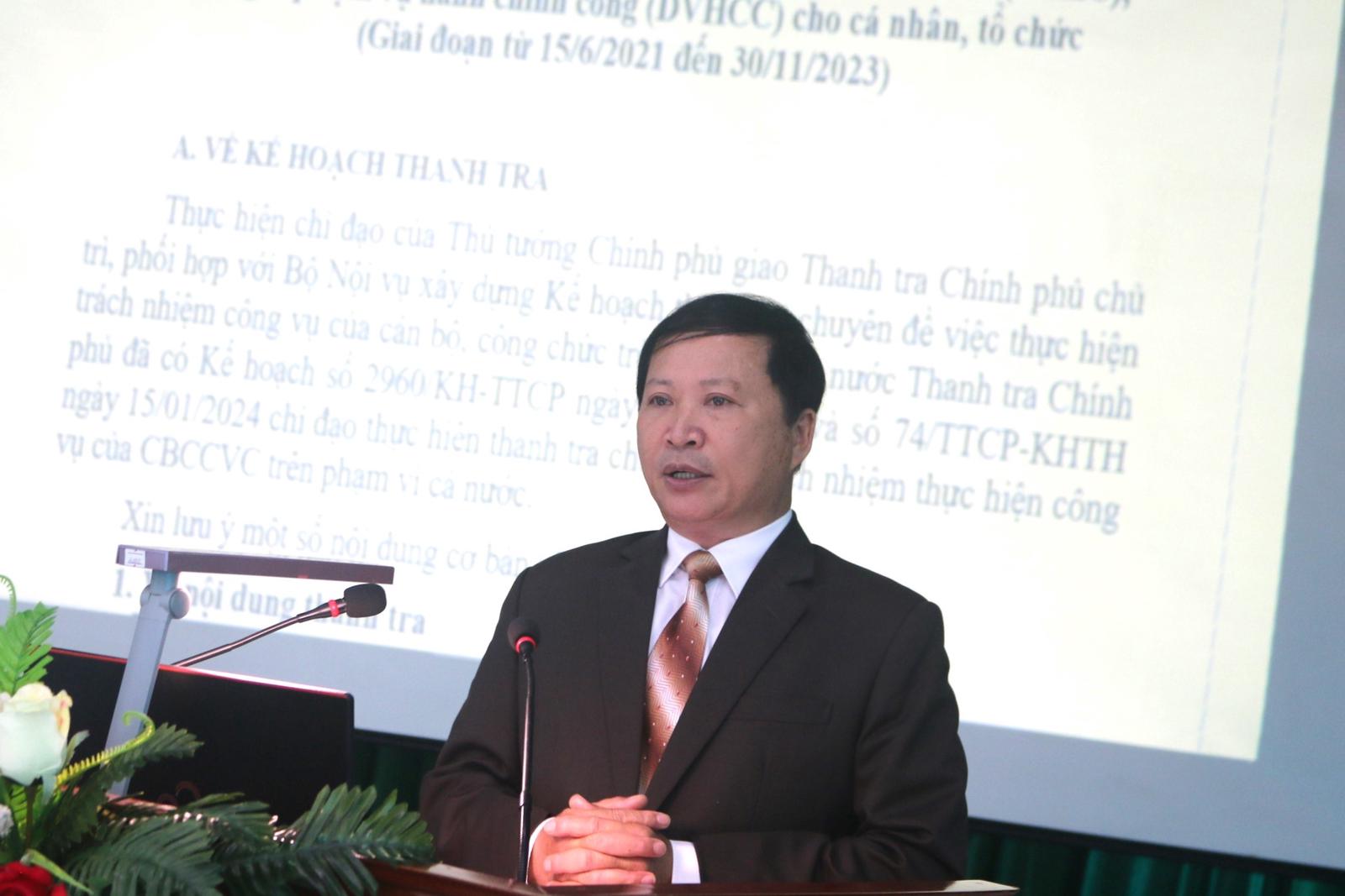 Ông Vũ Hồng Khánh, Phó Vụ trưởng Vụ Kế hoạch - Tổng hợp, Thanh tra Chính phủ giới thiệu một số nội dung thanh tra chuyên đề trách nhiệm về thực hiện công vụ của cán bộ, công chức trong giải quyết thủ tục hành chính, cung cấp dịch vụ công cho người dân và doanh nghiệp. Ảnh: Hoàng Nam