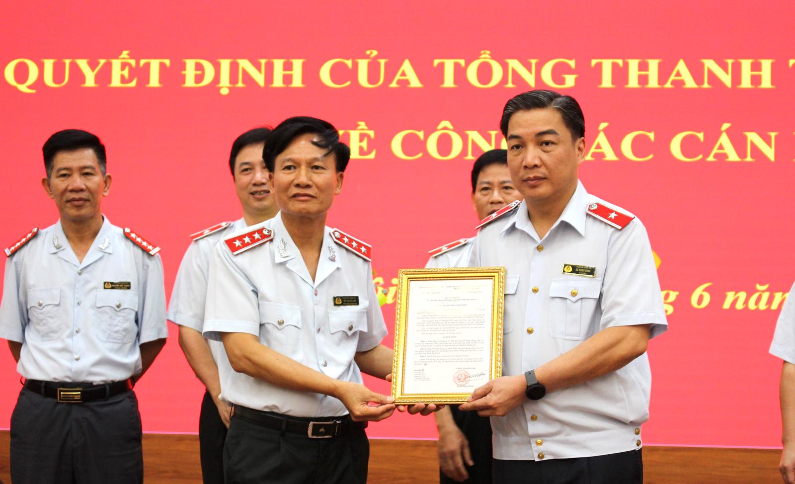 Phó Tổng Thanh tra Chính phủ Bùi Ngọc Lam trao quyết định cho ông Nguyễn Văn Cảnh. Ảnh: PH