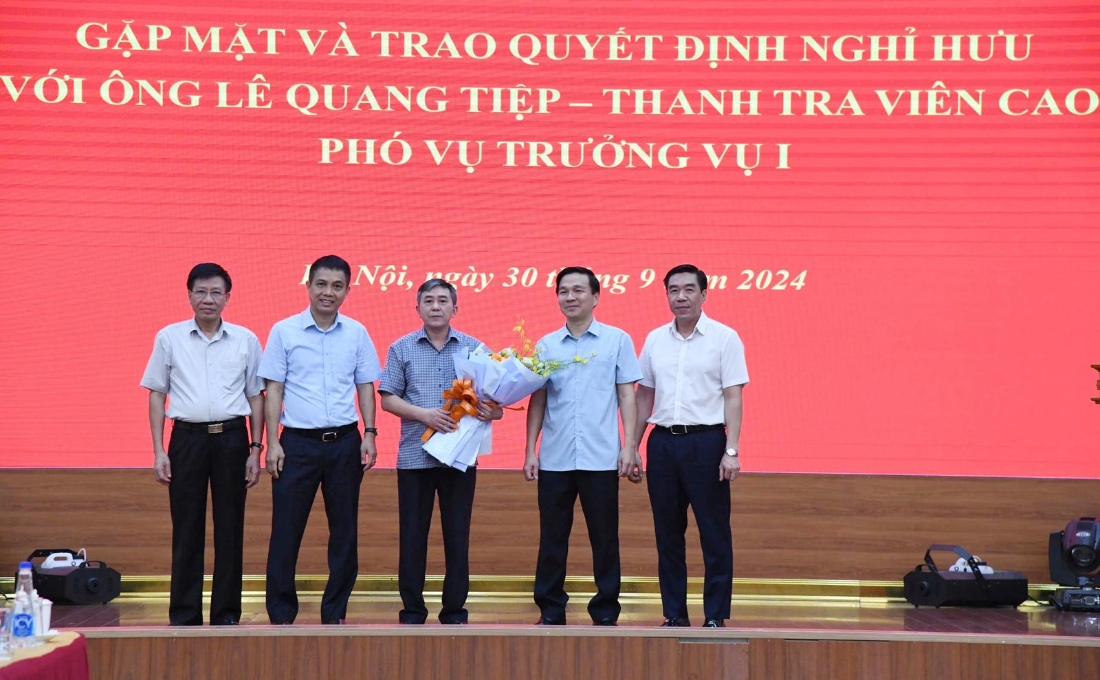 Phó Tổng Thanh tra Chính phủ Lê Sỹ Bảy đã trao quyết định nghỉ hưu cho đồng chí Lê Quang Tiệp.