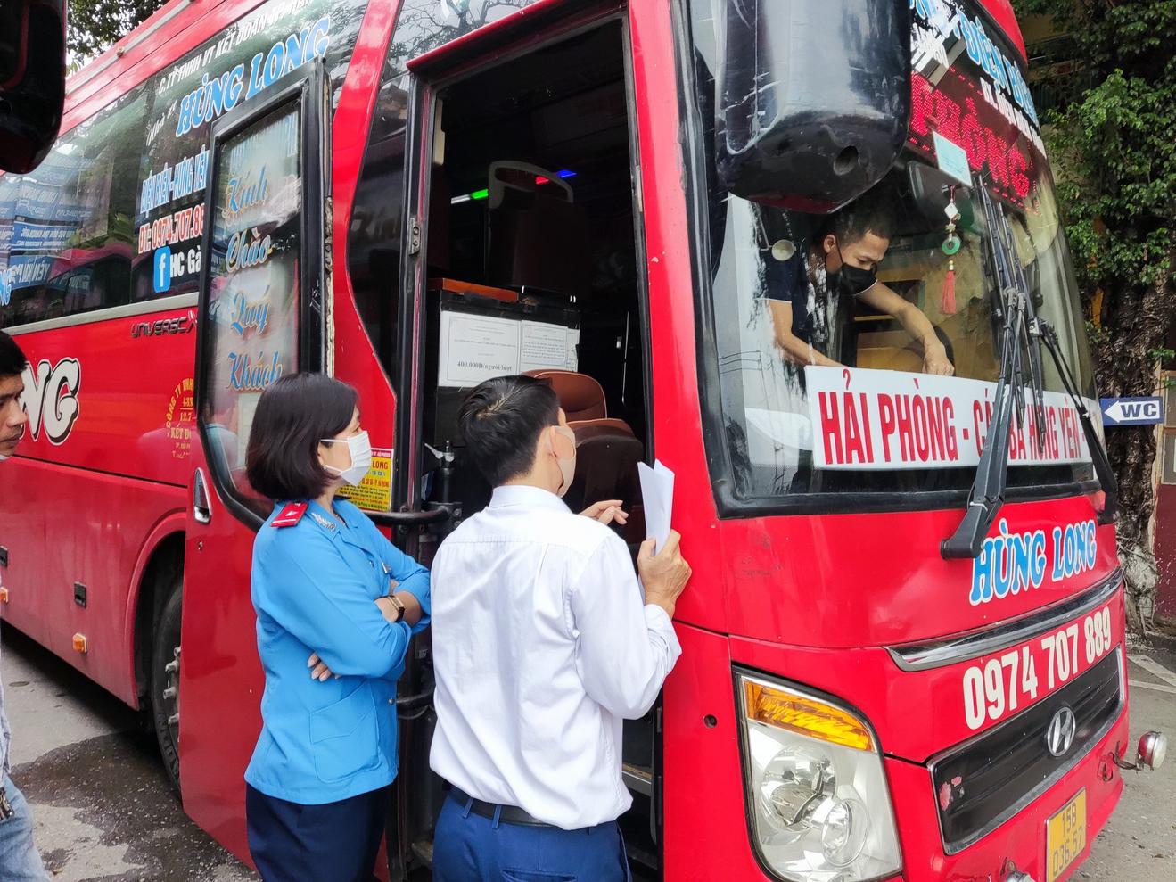 Thanh tra giao thông đường bộ kiểm tra phương tiện trước khi xuất bến