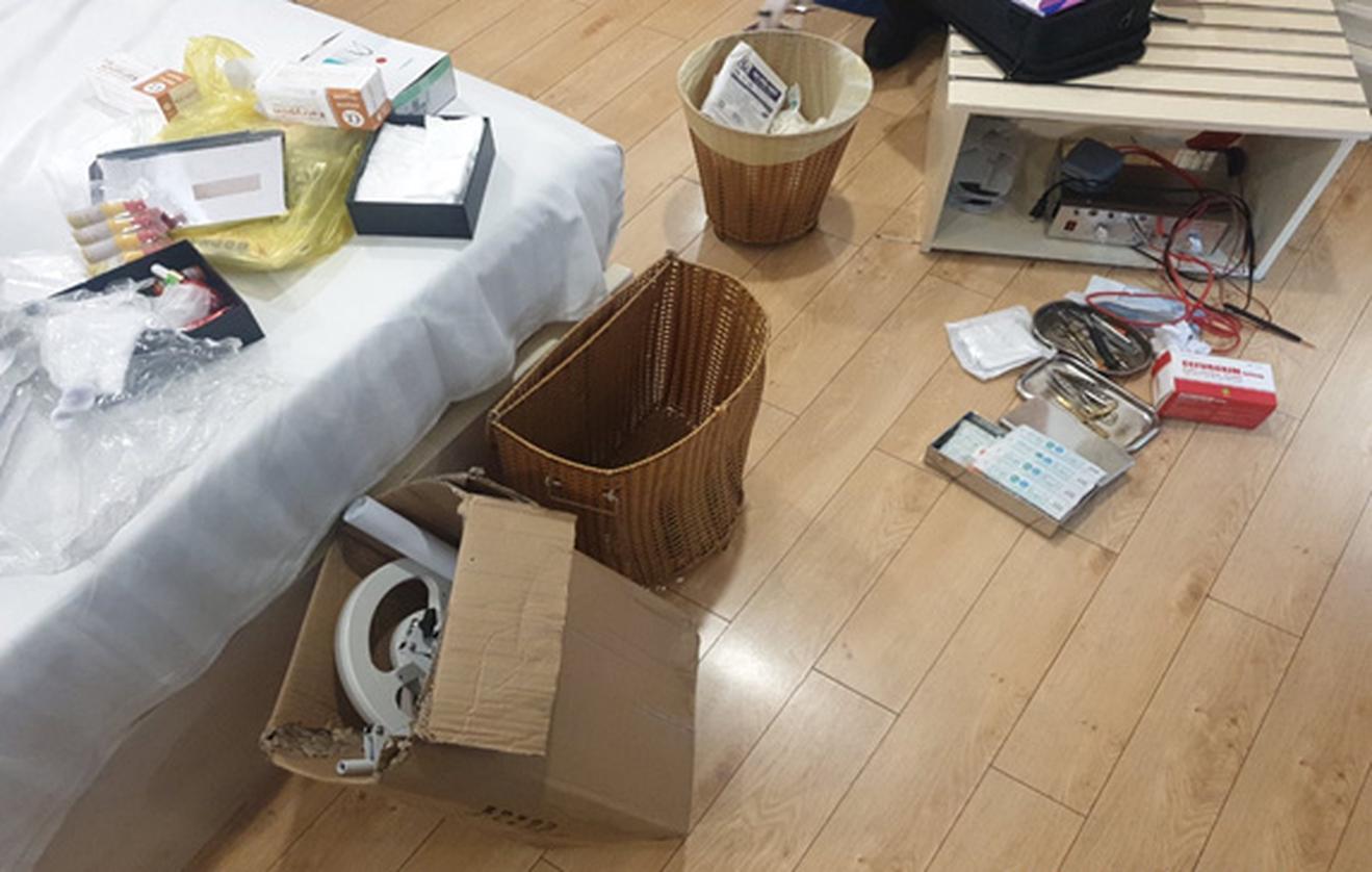 Các cá nhân đã dừng hoạt động thẩm mỹ nhưng trong phòng có các dụng cụ và trang thiết bị y tế, thuốc.
