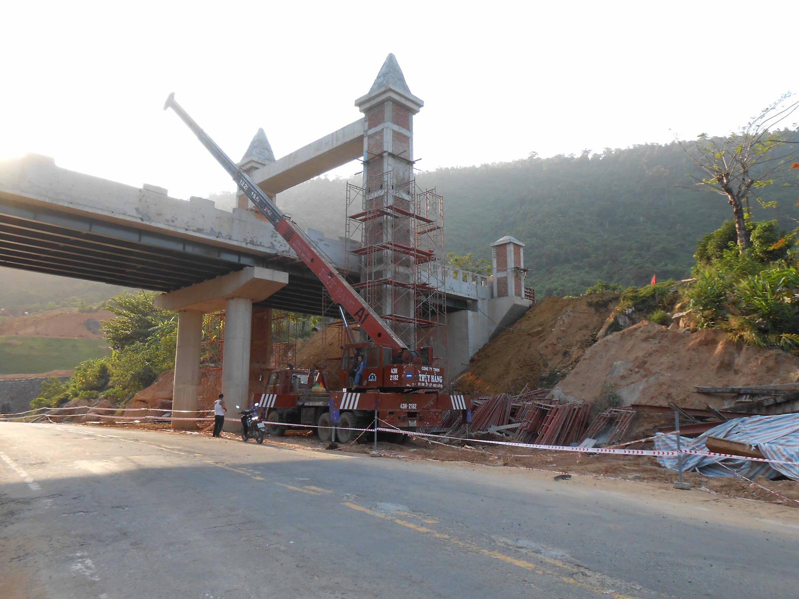 Cầu vượt quốc lộ 14G có trụ nằm ngoài hành lang đường bộ, vừa gây mất an toàn giao thông, vừa mất mỹ quan đô thị