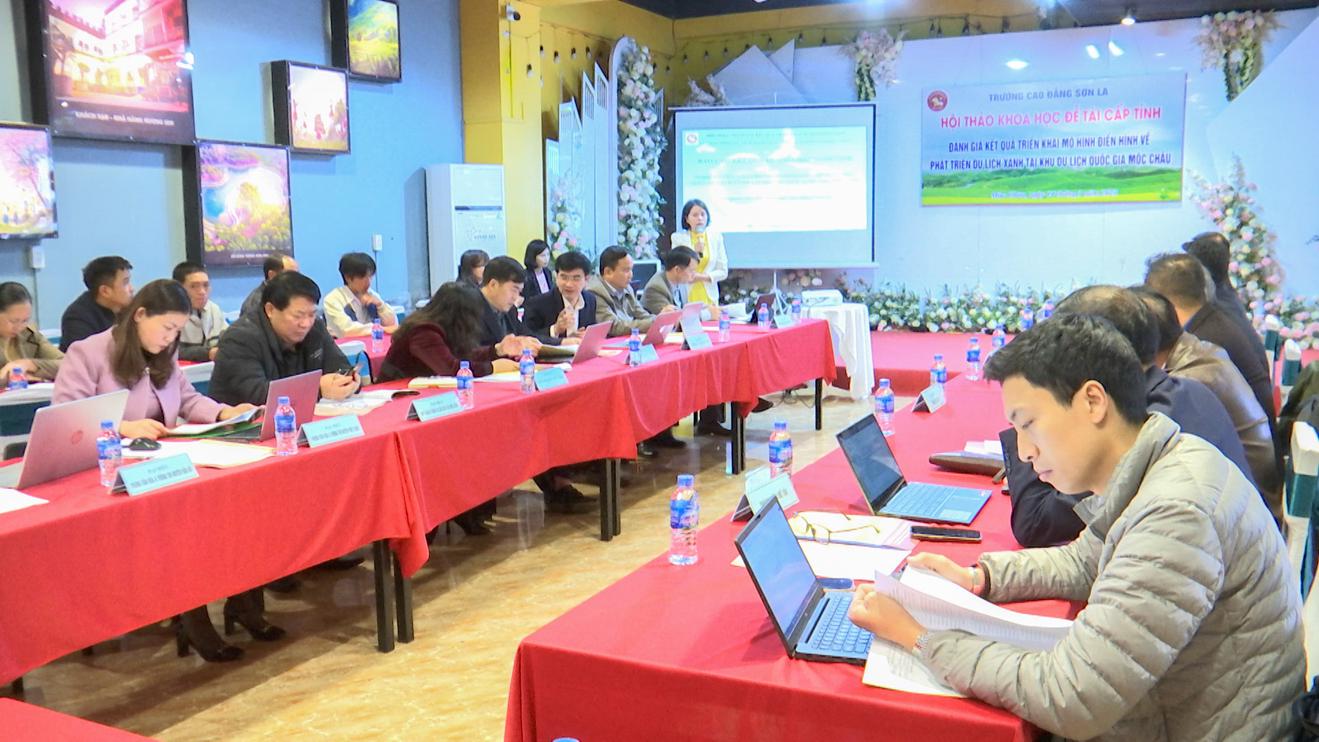 Hội thảo khoa học đề tài "Đánh giá kết quả triển khai mô hình điển hình về phát triển du lịch xanh tại khu du lịch quốc gia Mộc Châu". Ảnh: cdsonla.edu.vn
