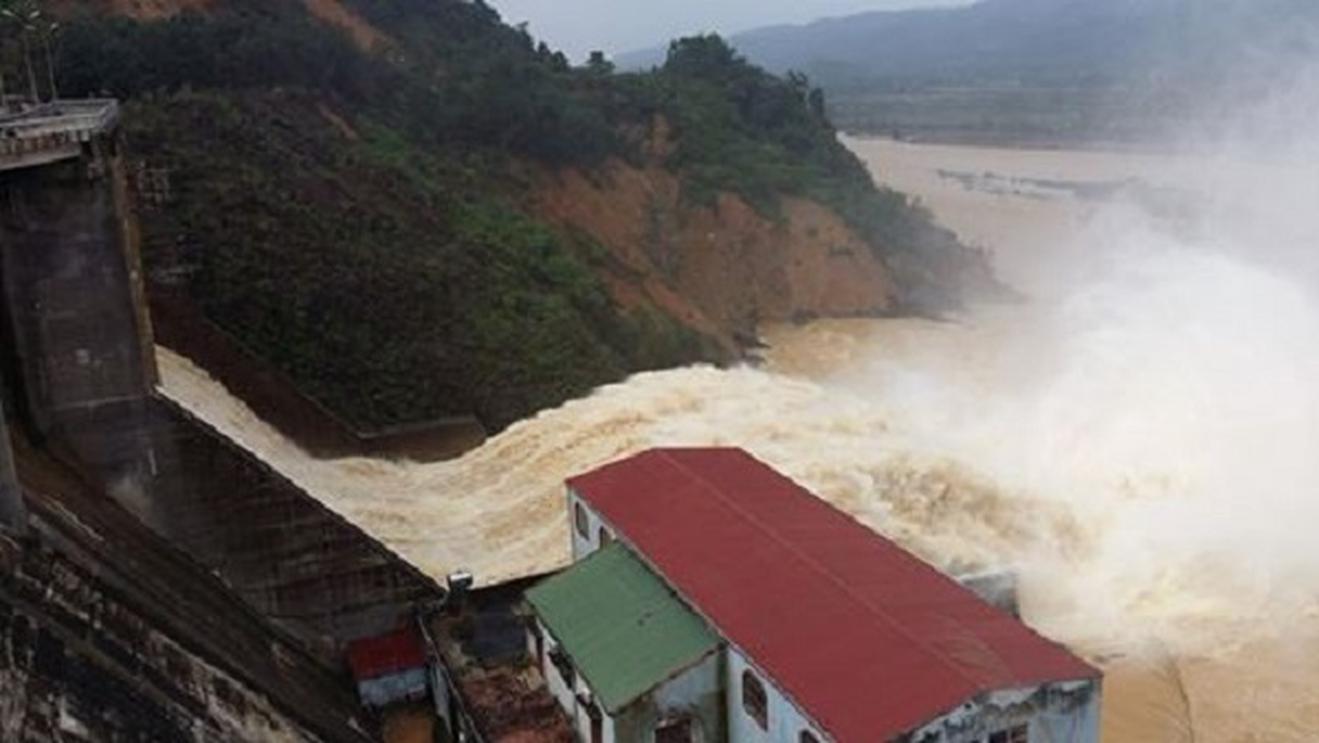 Thủy điện Hố Hô (Hà Tĩnh) đang xả lũ ngày 16/10. Ảnh Đức Ngọc/Người lao động