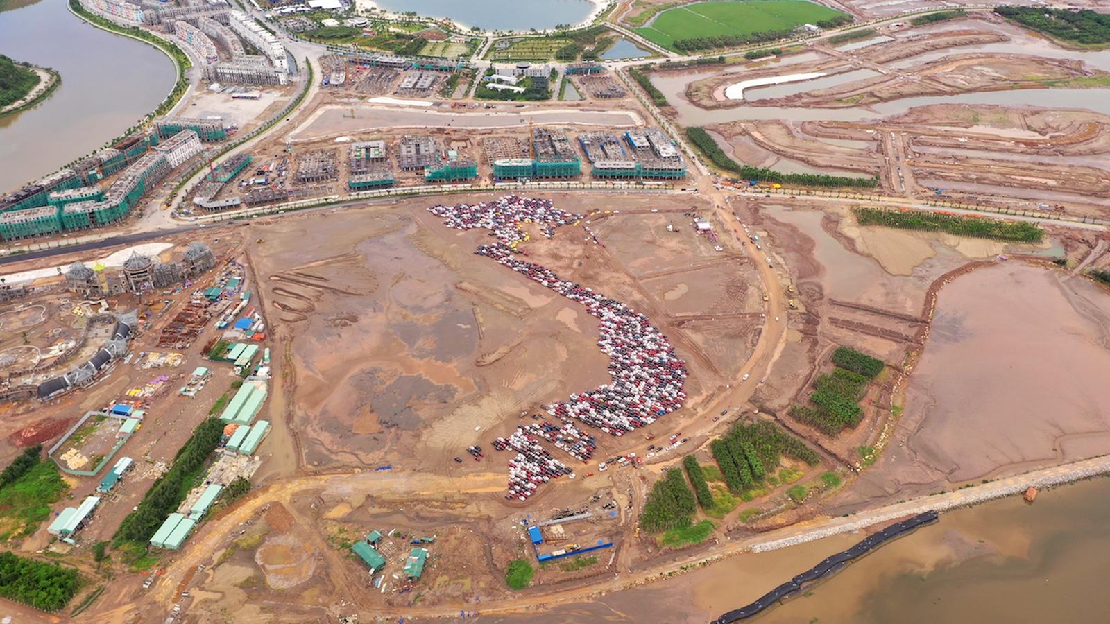 Một góc máy tuyệt đẹp khi những chiếc ô tô Việt Nam đang trong quá trình xếp xe, hòa vào cảnh sắc thiên nhiên tại Hải Phòng. 1.700 xe cũng là số lượng xe kỉ lục tham gia vào một sự kiện xếp hình bằng ô tô. Hiện tại, kỉ lục thế giới về xếp hình bằng ô tô được tổ chức Guinness ghi nhận là 750 xe.