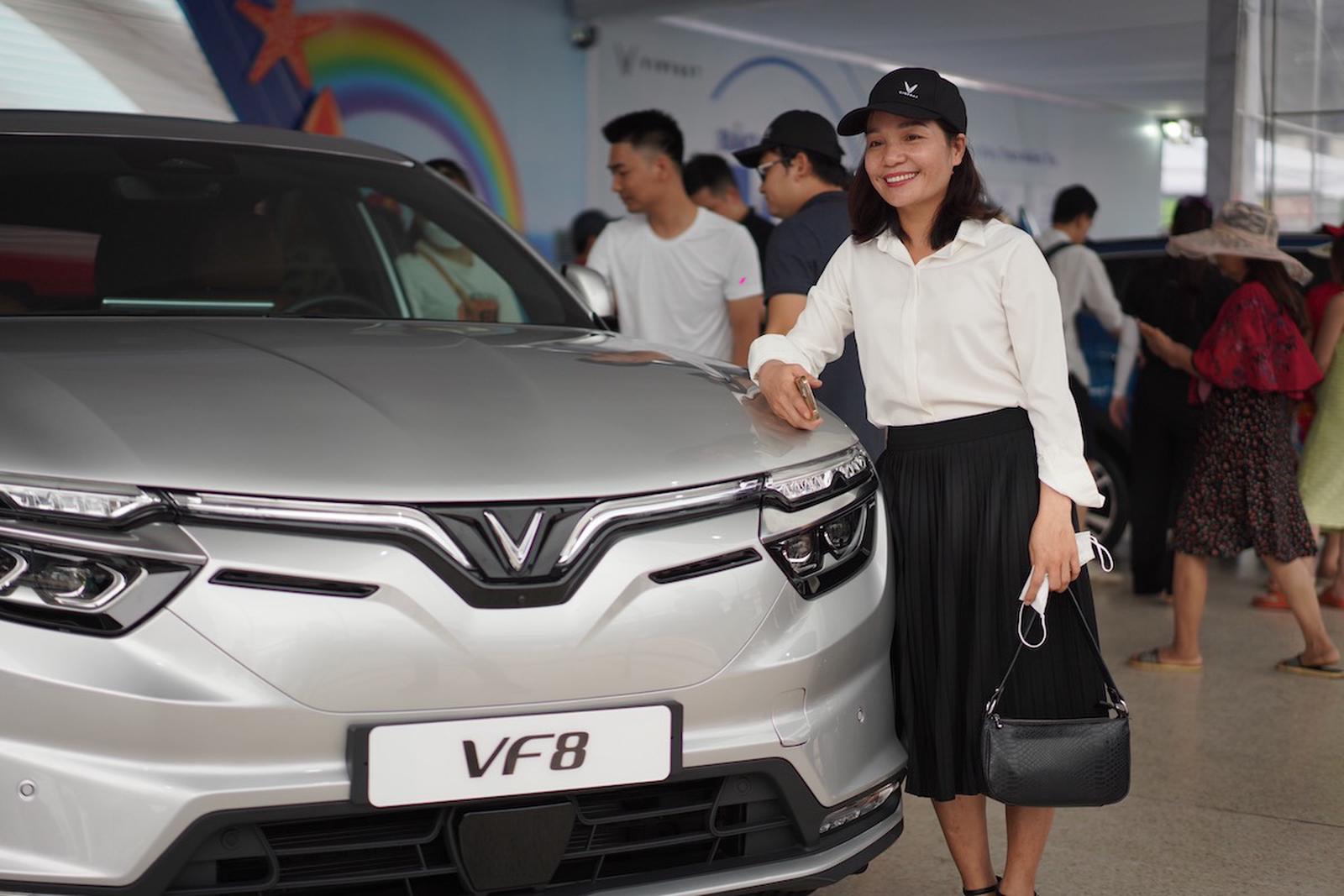 Đặc biệt, mẫu xe điện VF 8 cũng gây bất ngờ với người dùng khi chính thức xuất hiện tại đây. Rất nhiều khách hàng tranh thủ check-in và thừa nhận bị hấp dẫn trong lần đầu tiên được ngắm tận mắt mẫu xe điện cao cấp của VinFast.