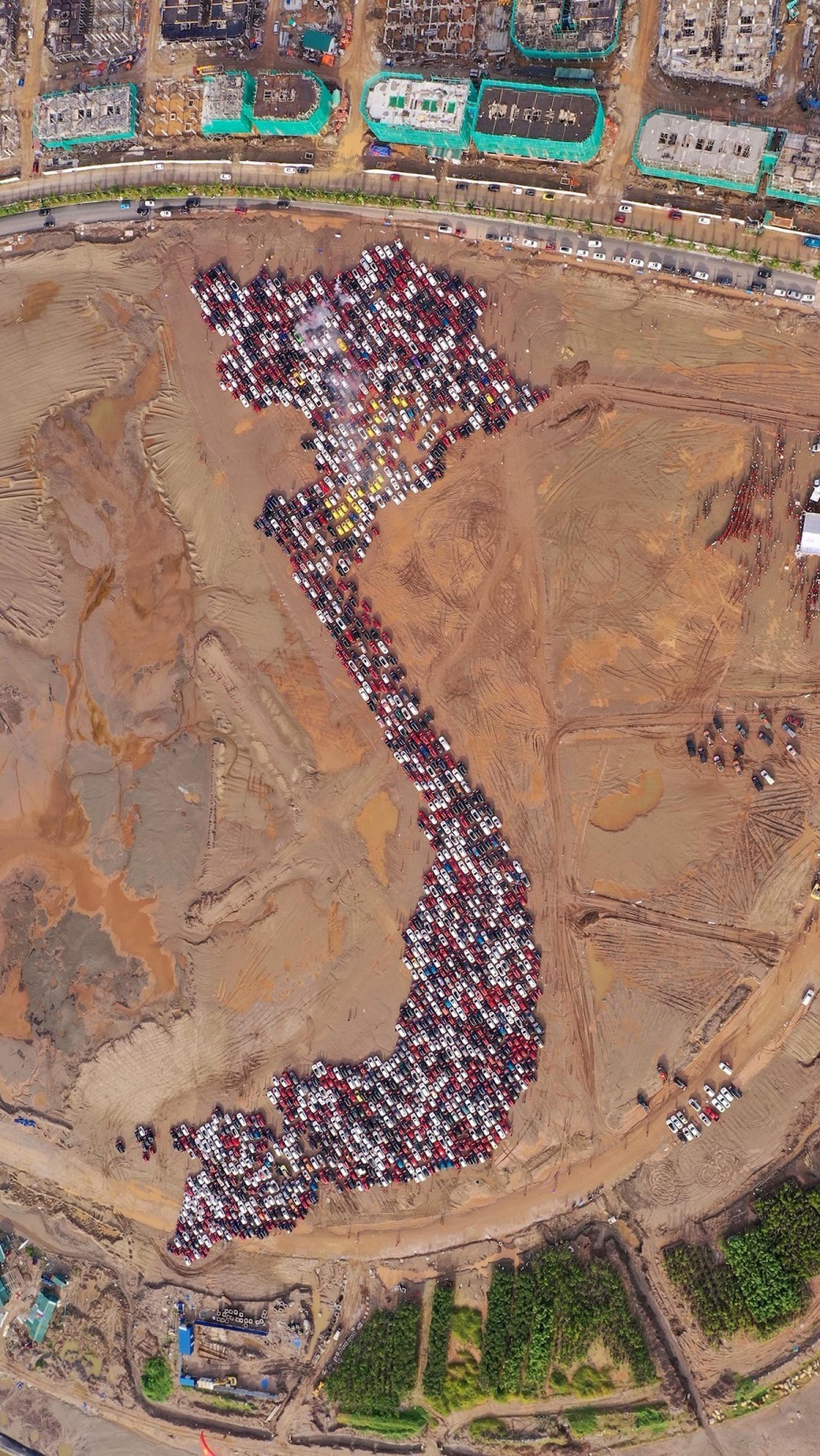 (Thanh tra) - Chiều ngày 9/7, hình ảnh quen thuộc của dải đất hình chữ S đã được “vẽ” nên bởi 1.700 ô tô, tạo nên kỉ lục đáng nhớ của người Việt trong sự kiện “Xếp xe kỉ lục hình bản đồ Việt Nam”. Ấn tượng đặc biệt trong trong tấm bản đồ này là mảng ghép lớn của khoảng 1.000 chiếc xe VinFast.
