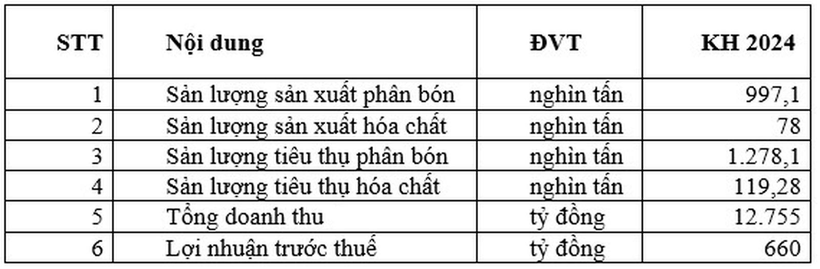Cụ thể, tổng sản lượng kinh doanh phân bón ước đạt 694,4 ngàn tấn, tăng 5% so với cùng kỳ năm 2023 và đạt 106% so với kế hoạch 6 tháng đầu năm; tổng sản lượng kinh doanh hóa chất ước đạt 63,6 ngàn tấn, tăng 20% so với cùng kỳ năm 2023 và đạt 108% kế hoạch 6 tháng đầu năm.