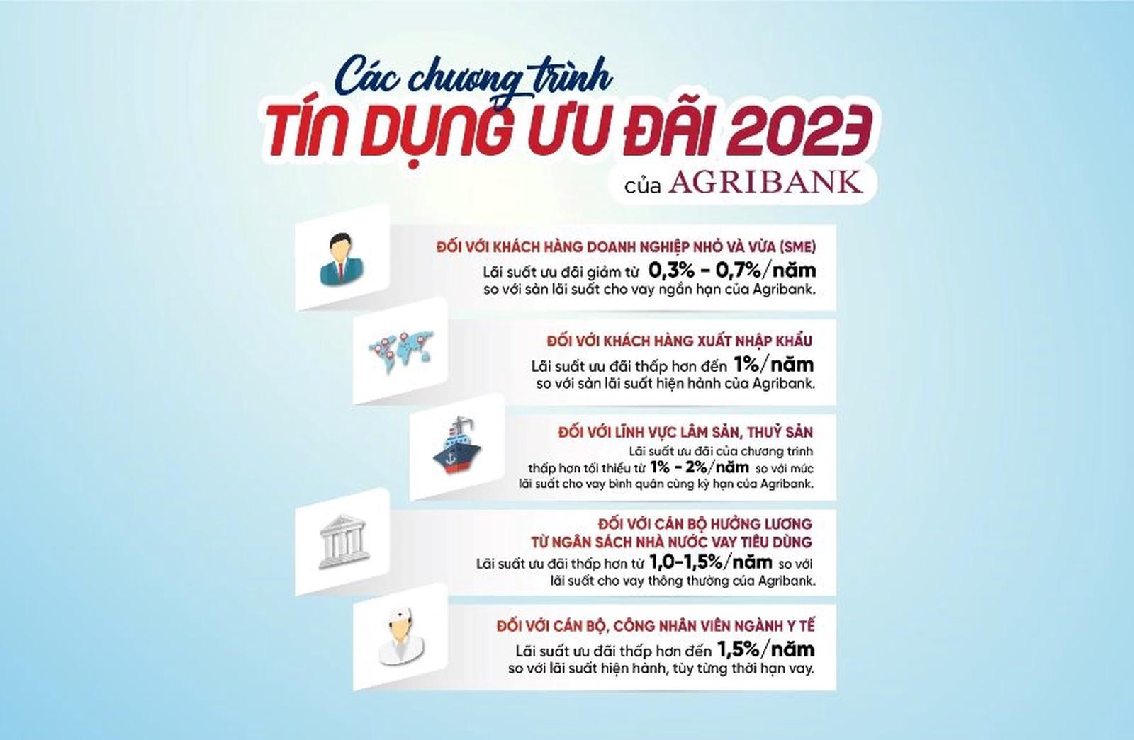 Trên cơ sở bám sát định hướng chỉ đạo của Chính phủ, NH Nhà nước, trong thời gian qua, Agribank đã chủ động triển khai đồng bộ, quyết liệt nhiều giải pháp hỗ trợ nền kinh tế nói chung và các doanh nghiệp trên địa bàn Thủ đô nói riêng, chủ động giảm lãi suất huy động để có điều kiện giảm lãi suất cho vay; cơ cấu lại thời hạn trả nợ, giữ nguyên nhóm nợ; triển khai các chương trình tín dụng ưu đãi lãi suất với tổng quy mô hơn 60.000 tỷ đồng dành cho nhiều đối tượng khách hàng: doanh nghiệp nhỏ và vừa, lĩnh vực lâm, thủy sản, khách hàng xuất nhập khẩu, bất động sản… Lãi suất cho vay của Agribank hiện nay ở mức cạnh tranh và thấp nhất trên thị trường. Đối với nhu cầu vay mới phục vụ hoạt động sản xuất kinh doanh, mức lãi suất cho vay ngắn hạn chỉ từ 5%/năm, lãi suất cho vay trung dài hạn chỉ từ 6,7%/năm.