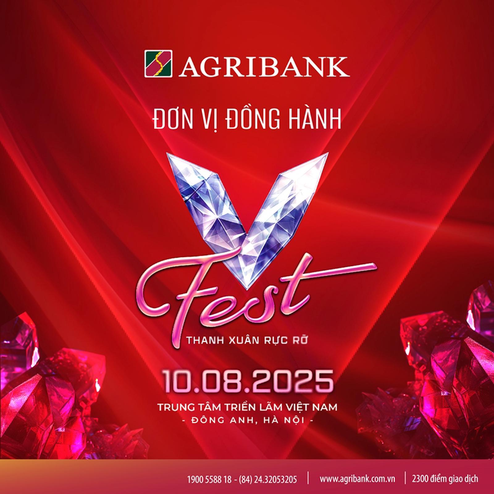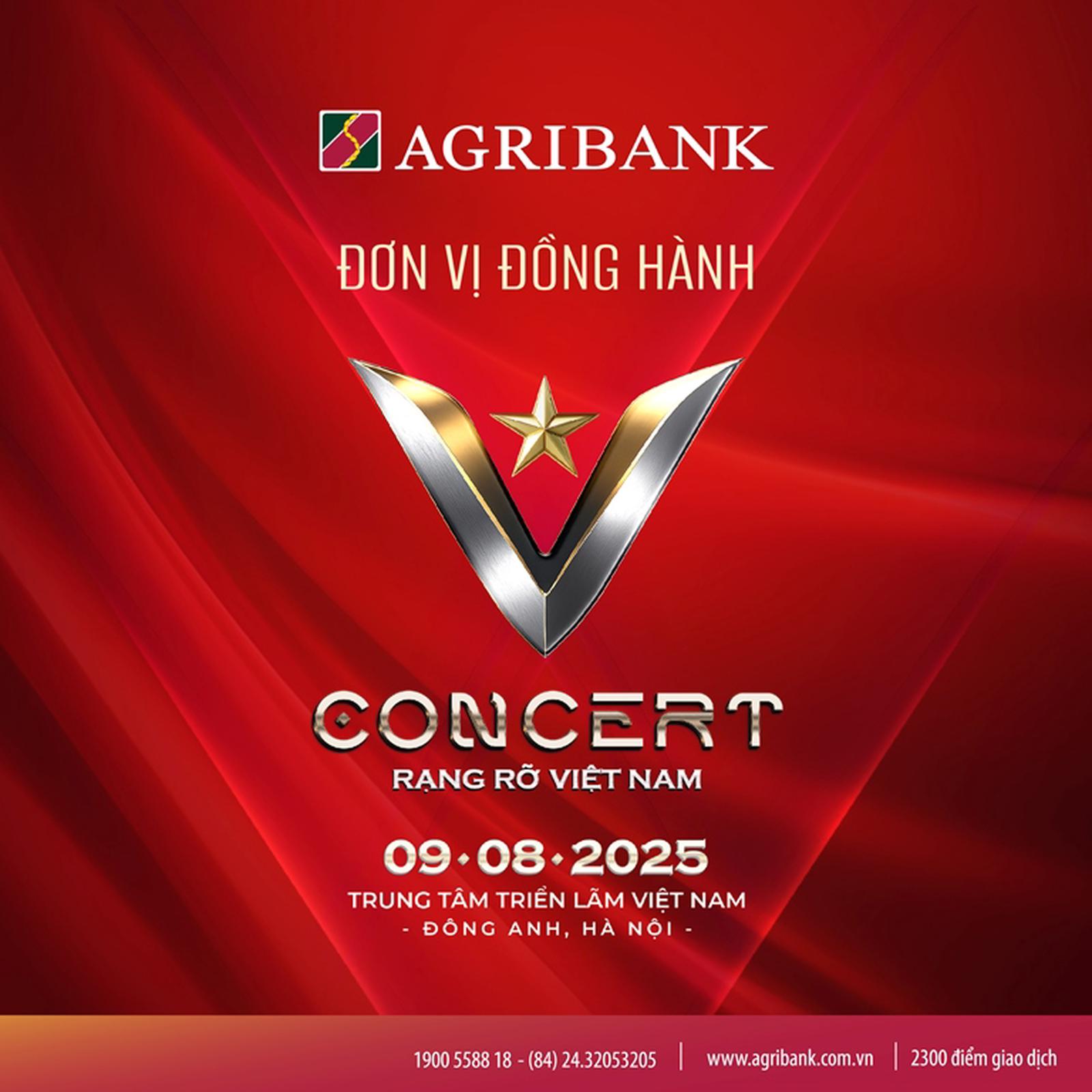 (Thanh tra) - Hướng tới kỷ niệm 80 năm Cách mạng Tháng Tám thành công và Quốc khánh nước Cộng hòa xã hội chủ nghĩa Việt Nam, “V Concert - Rạng rỡ Việt Nam” và “V Fest - Thanh xuân rực rỡ” diễn ra trong tối 9/8 và 10/8/2025 tại Trung tâm Triển lãm Việt Nam - công trình đạt chuẩn quốc tế và hiện đại nhất nước vừa được khánh thành. Agribank vinh dự đồng hành cùng hai sự kiện đặc biệt này.