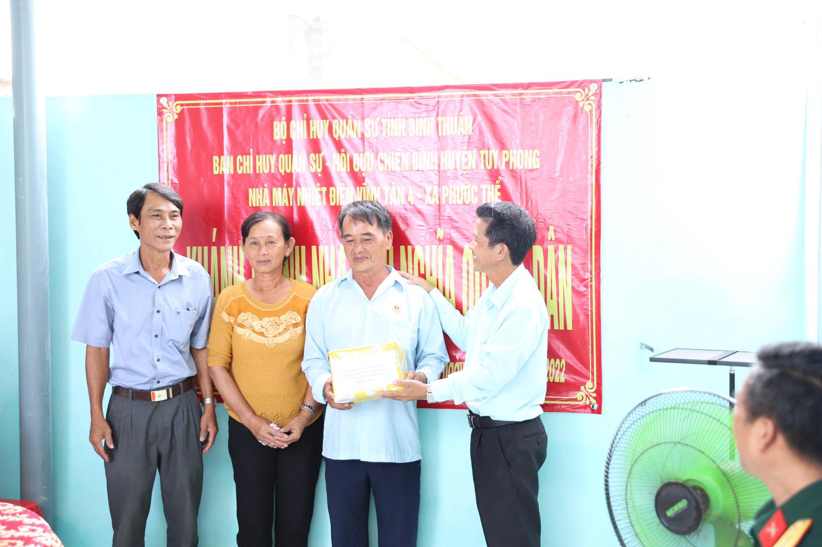 Ông Huỳnh Văn Thái, cựu chiến binh là đối tượng có hoàn cảnh hết sức khó khăn về nhà ở (Nhà dột nát), đã được Nhà máy Nhiệt điện Vĩnh Tân 4 phối hợp Ban Chỉ huy Quân sự huyện Tuy Phong và Hội Cựu Chiến binh huyện Tuy Phong xây dựng ngôi Nhà "Tình nghĩa Quân - Dân" khang trang với diện tích hơn 60m2, tổng giá trị ngôi nhà là 140 triệu đồng.