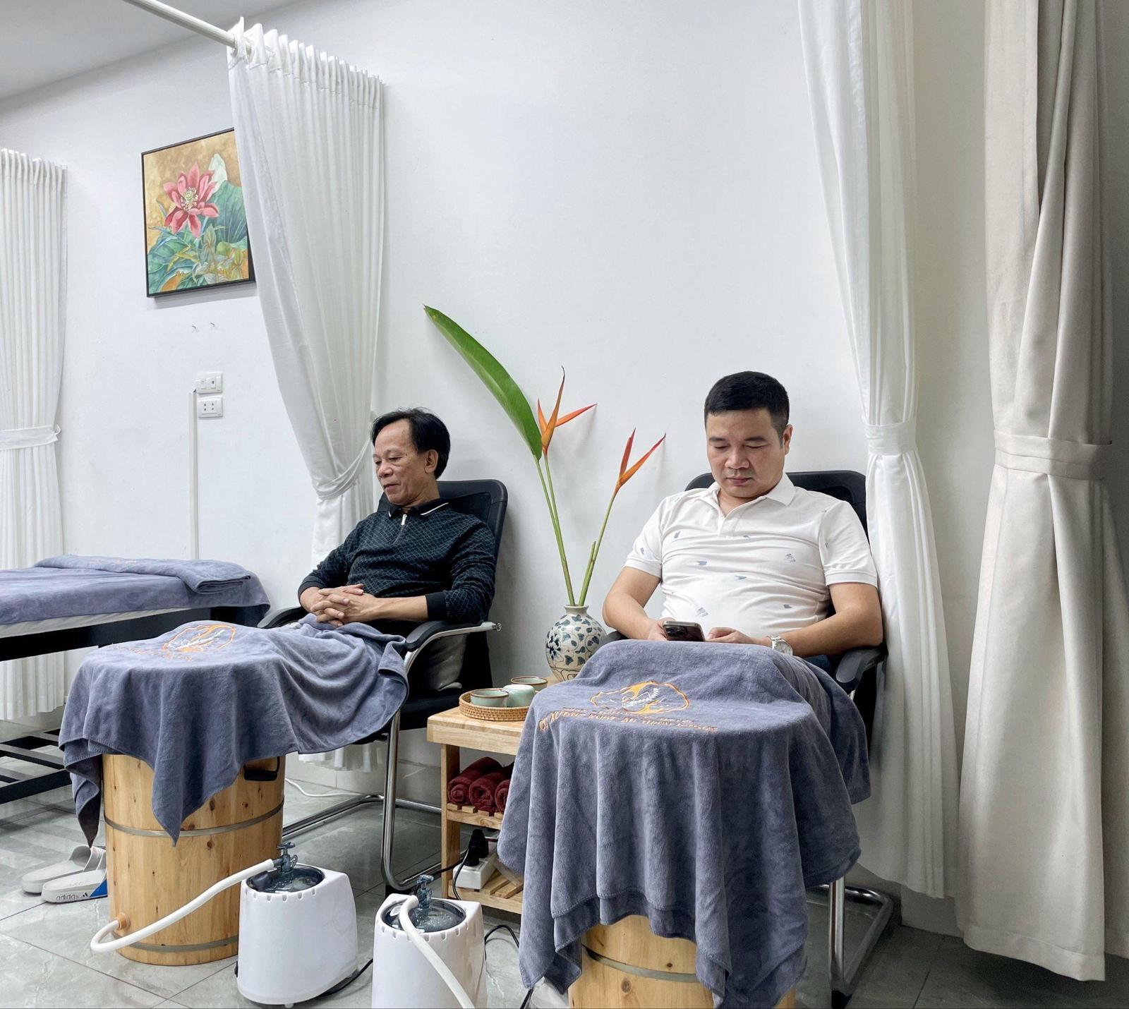 Khách hàng sử dụng dịch vụ xông chân bằng thảo dược cơ xương khớp An Thịnh Đường.