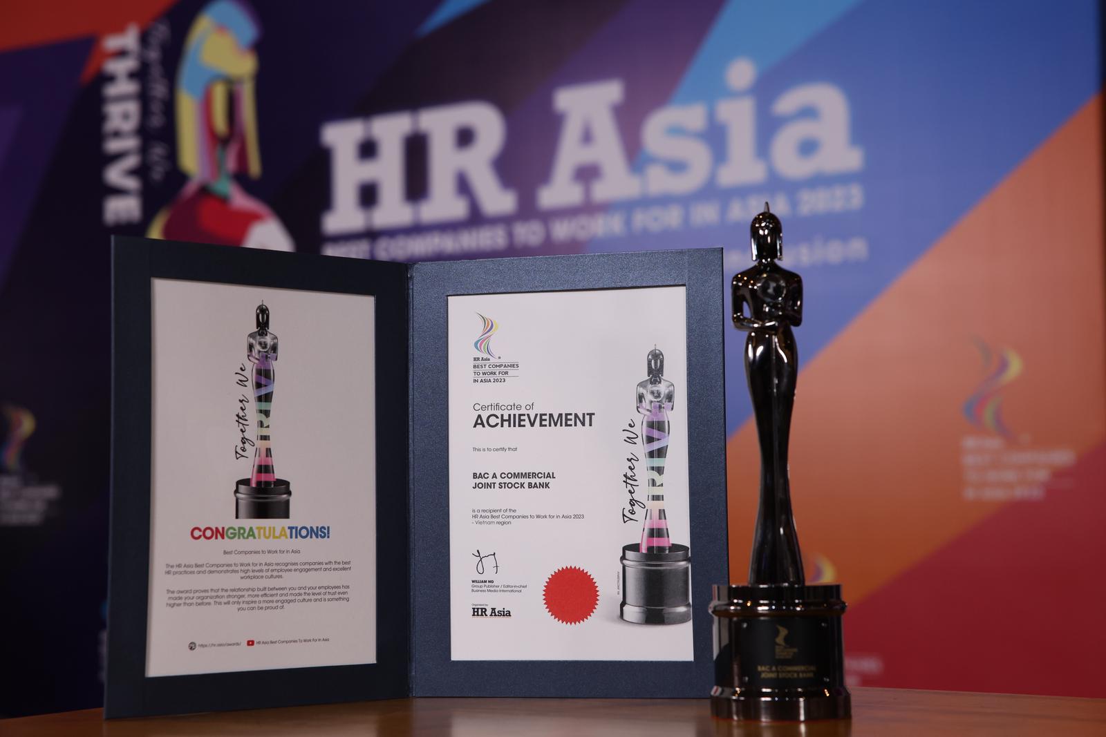 Ngân hàng TMCP Bắc Á (BAC A BANK) đã vinh dự giành giải thưởng “Nơi làm việc tốt nhất Châu Á 2023” từ Giải thưởng danh tiếng về quản trị nhân sự HR Asia Award