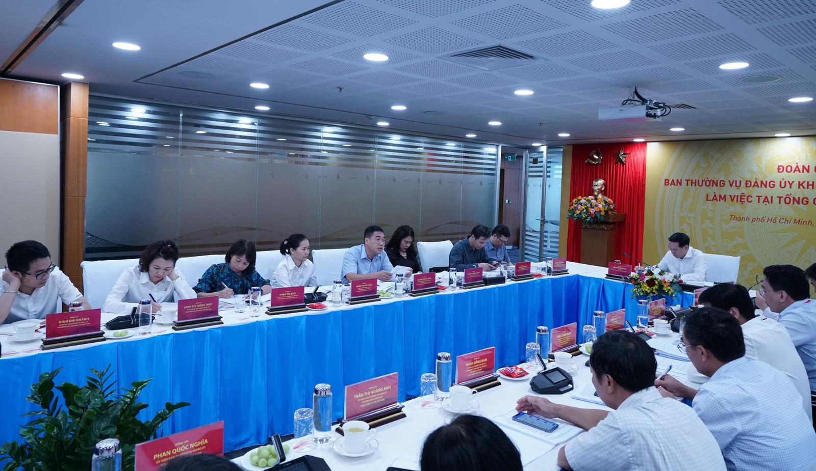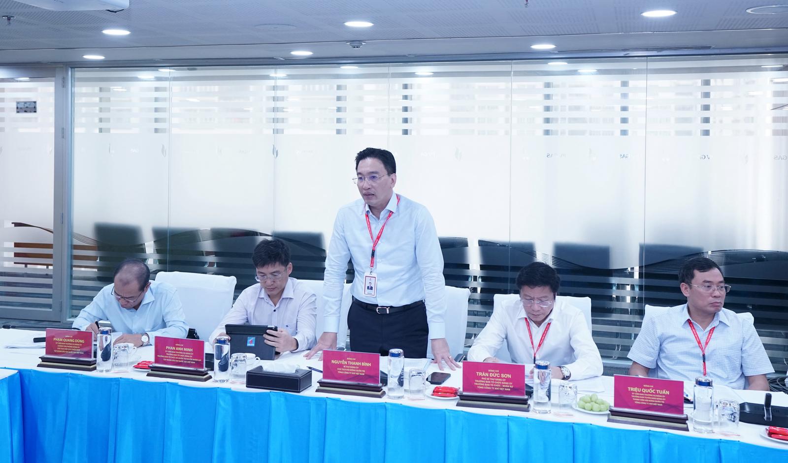 Đồng chí Nguyễn Thanh Bình, Bí thư Đảng ủy, Chủ tịch HĐQT Tổng công ty; đồng chí Trần Đức Sơn, Phó Bí thư Đảng ủy, Trưởng Ban Tổ chức nhân sự; các đồng chí ủy viên Ban Thường vụ Đảng ủy, ủy viên Ban Chấp hành Đảng bộ, lãnh đạo các Ban tham mưu giúp việc Đảng ủy và các ban, bộ phận chức năng liên quan của Tổng công ty cùng tham dự buổi làm việc với Đoàn giám sát.