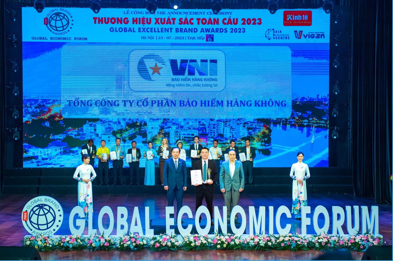 (Thanh tra) - Sáng ngày 23/07/2023, tại Nhà hát Quân đội, Cầu Giấy, Hà Nội, Tổng Công ty Cổ phần Bảo hiểm Hàng không (VNI) đã vinh dự nhận giải thưởng Top 20 Thương hiệu xuất sắc toàn cầu 2023 do Tạp chí Kinh tế Châu Á – Thái Bình Dương phối hợp cùng Trung tâm Nghiên cứu phát triển doanh nghiệp Châu Á tổ chức.