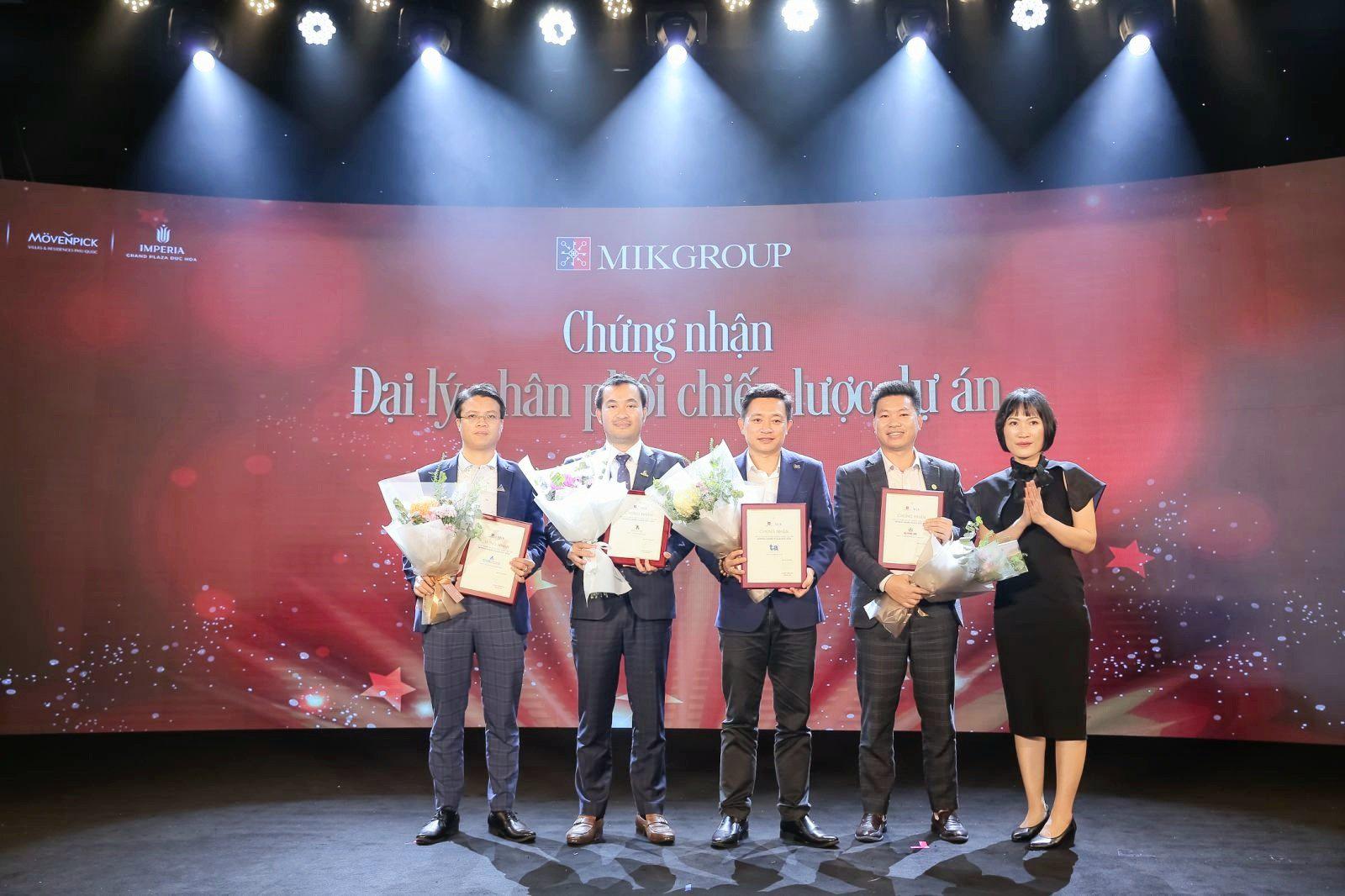 Đại diện MIKHome trao chứng nhận cho 4 đại lý chiến lược phân phối dự án