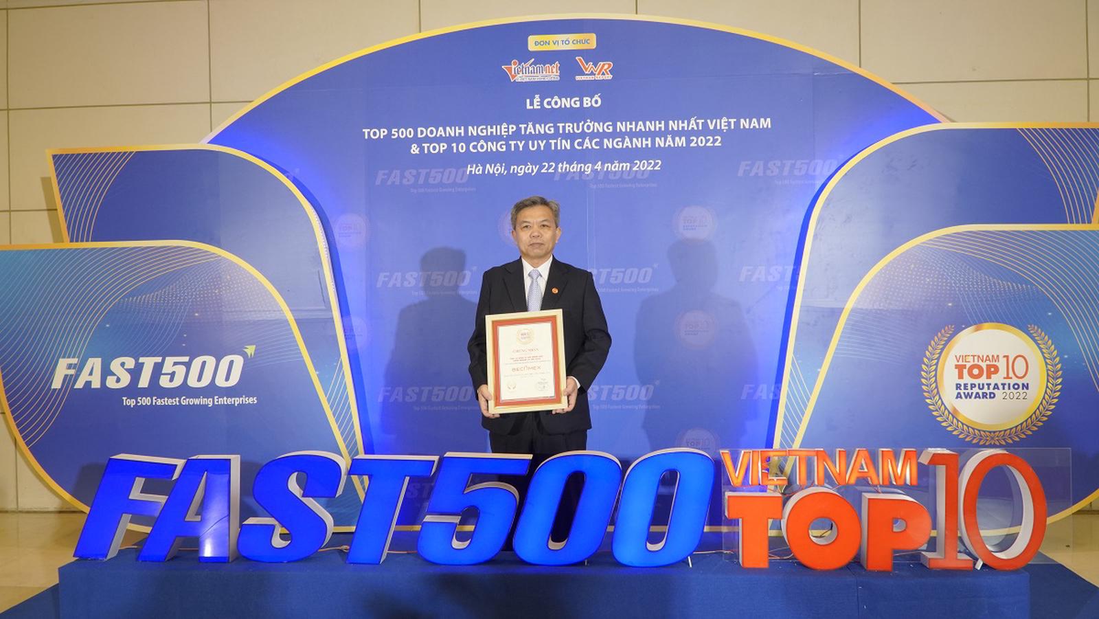 Ông Nguyễn Văn Thanh Huy, Phó Tổng Giám đốc Tổng công ty Becamex IDC nhập giấy chứng nhận từ Ban Tổ chức Lễ công bố Top 10 công ty bất động sản công nghiệp uy tín năm 2022.