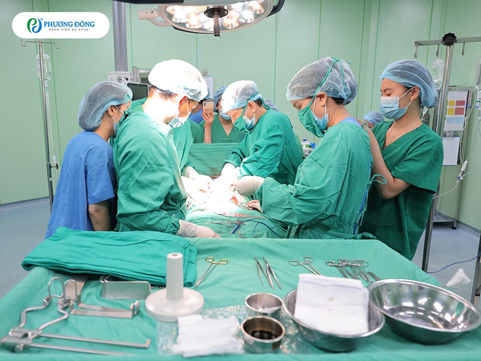 Tổng hợp các kết quả thăm khám, xét nghiệm, bệnh viện Phương Đông đã ngay lập tức tiến hành hội chẩn liên chuyên khoa gồm: Ung bướu, Giải phẫu bệnh, Chẩn đoán hình ảnh, Ngoại khoa và Gây mê hồi sức để đưa ra phác đồ can thiệp kịp thời với ca ung bướu phức tạp này.