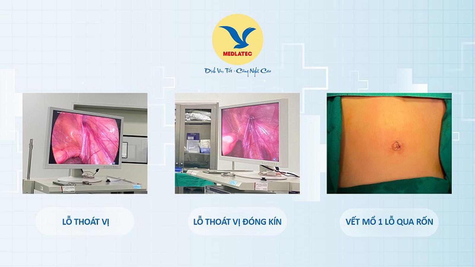Bên cạnh phục vụ khám, chẩn đoán bệnh chính xác, Bệnh viện Đa khoa MEDLATEC không ngừng đón đầu áp dụng những phương pháp điều trị hiện đại nhằm giảm đau, hiệu quả cũng như bảo đảm tính thẩm mỹ cho bệnh nhân, trong đó có mổ nội soi một lỗ phẫu thuật thoát vị bẹn.