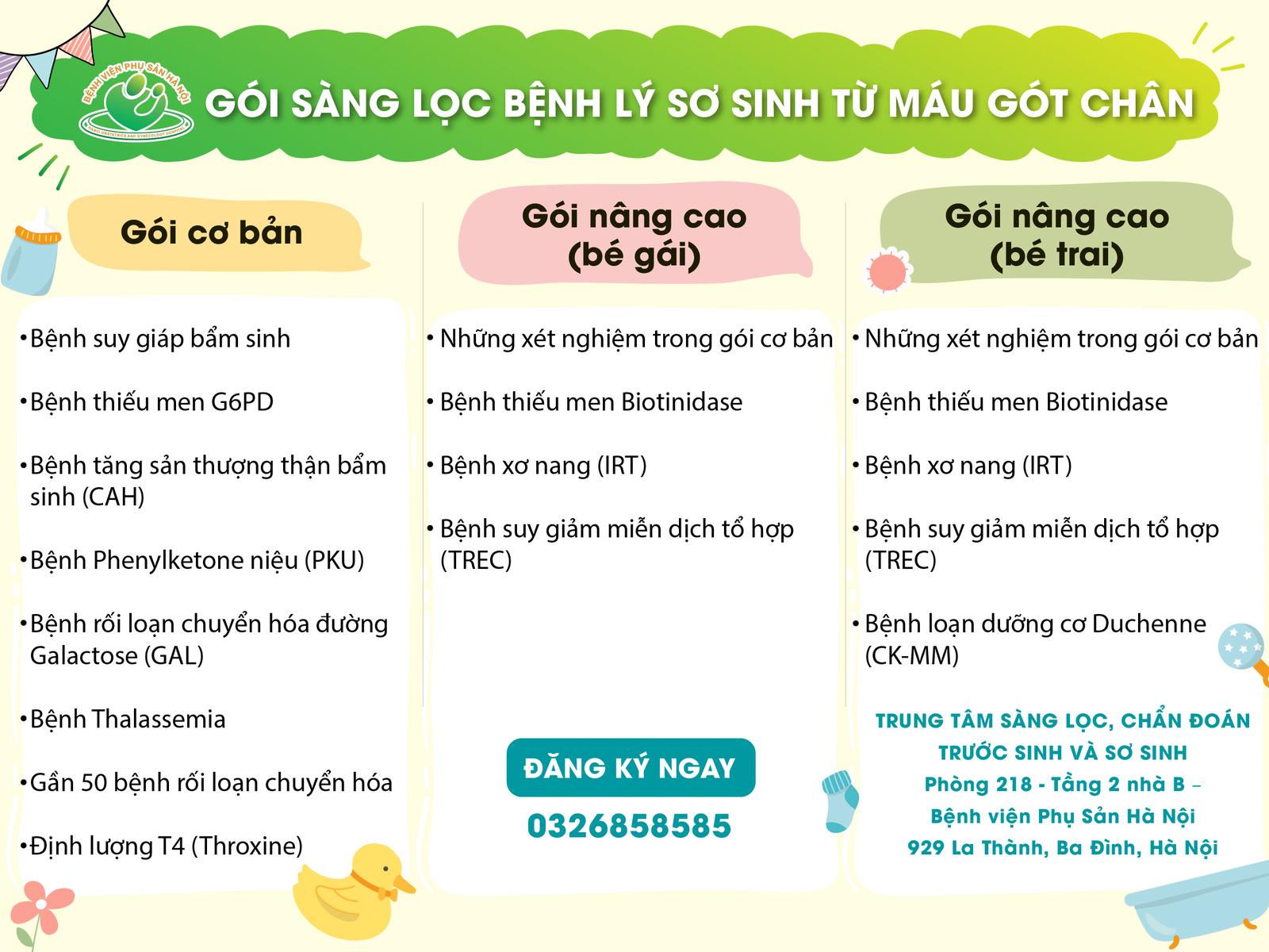 (Thanh tra) - Nhằm tạo cơ hội cho những mẹ không sinh em bé tại Bệnh viện Phụ Sản Hà Nội, hoặc khi bé sinh ra không có điều kiện được thực hiện sàng lọc, Bệnh viện triển khai các gói sàng lọc bệnh lý sơ sinh ngoại trú như sau: