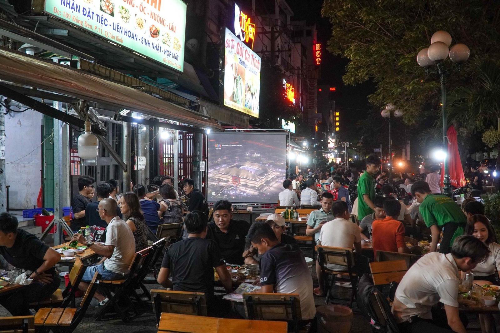 Những ngày này bất cứ đâu cũng trở thành fanzone của người hâm mộ. Từ phòng khách gia đình cho tới các trung tâm thương mại, quán café, nhà hàng, đặc biệt là những con phố đi bộ, ẩm thực luôn đầy ắp fan hâm mộ vừa “lai rai” những món ăn cay nóng, chiên xào, vừa cụng ly cổ vũ cho đội mình yêu thích.