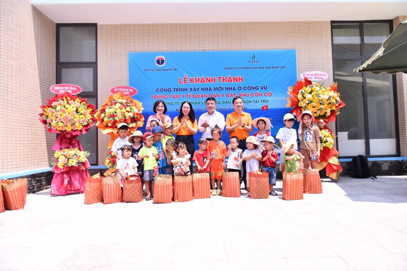 Trong khuôn khổ buổi lễ, Sở Y tế tỉnh Quảng Trị, BSR cũng đã trao tặng quà cho Trường Mầm non - Tiểu học Hoa Phong Ba tại Đặc khu Cồn Cỏ, góp phần động viên, hỗ trợ công tác giáo dục và chăm lo đời sống cho người dân trên đảo.