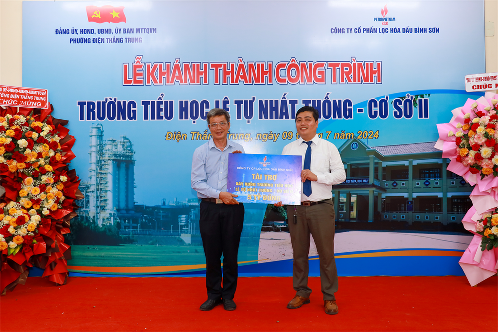 (Thanh tra)- Chiều ngày 9/7, Công ty cổ phần Lọc hoá dầu Bình Sơn (BSR) phối hợp với UBND phường Điện Thắng Trung (thị xã Điện Bàn, tỉnh Quảng Nam) tổ chức Lễ Khánh thành công trình Trường Tiểu học Lê Tự Nhất Thống - Cơ sở II.