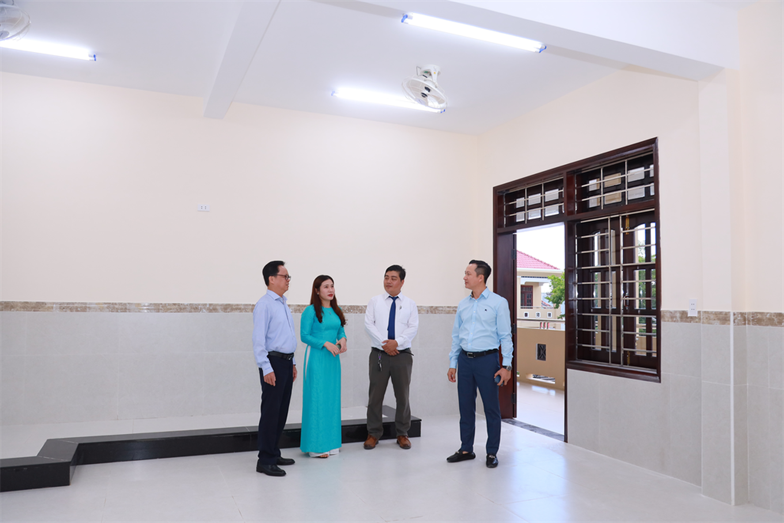 Các đại biểu tham quan cơ sở hạ tầng của trường vừa được hoàn thành xây dựng