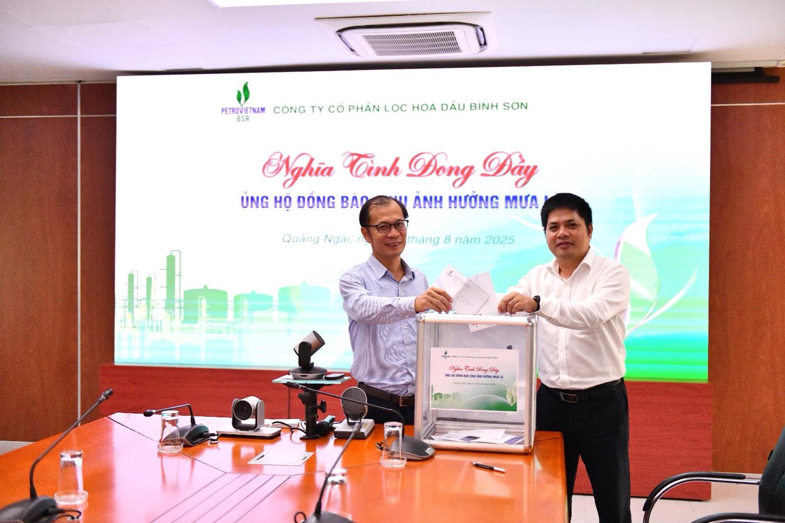 (Thanh tra) - Hưởng ứng chương trình “Nghĩa tình đong đầy” do Tập đoàn Công nghiệp - Năng lượng Quốc gia Việt Nam (Petrovietnam) phát động để ủng hộ đồng bào bị ảnh hưởng mưa bão, ngày 07/8/2025, Công ty cổ phần Lọc hóa dầu Bình Sơn (BSR) đã tổ chức quyên góp, chung tay chia sẻ khó khăn với đồng bào ở Bắc Bộ và Bắc Trung Bộ bị thiệt hại nặng do thiên tai, sớm vượt qua hoạn nạn và ổn định cuộc sống.