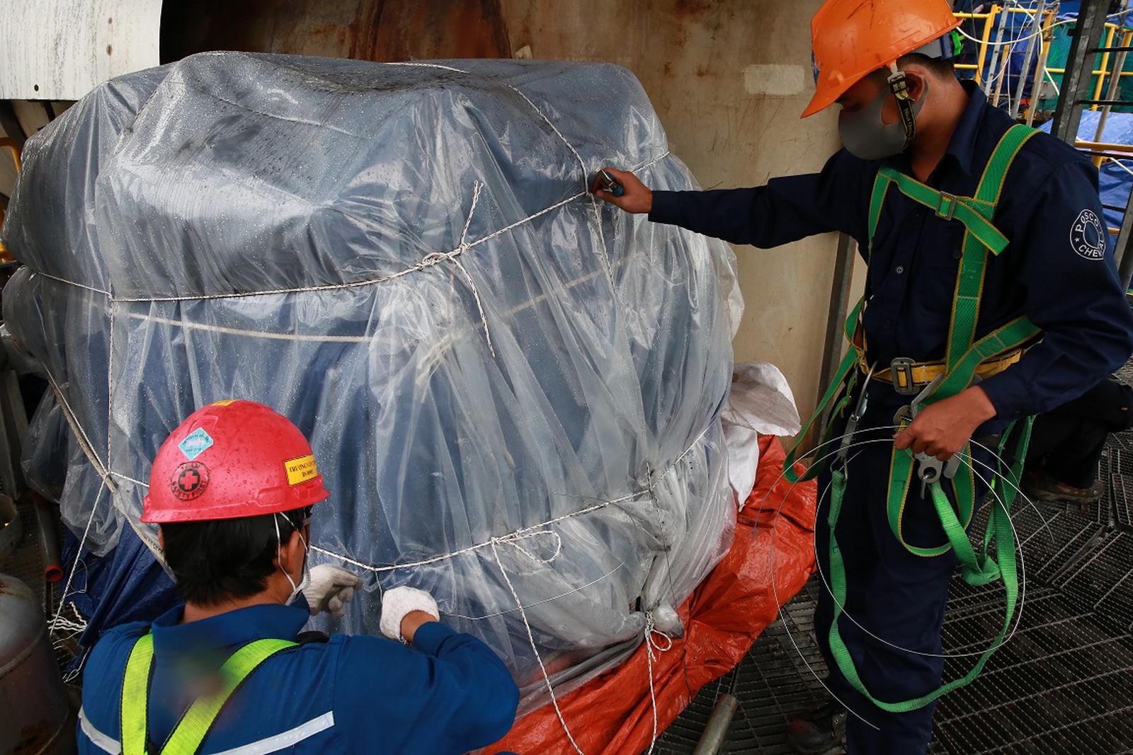 Ông Đoàn Ngọc Tấn - Phó Giám đốc gói thầu số 2 cho biết: “Công việc gói 2 và 3 do liên danh nhà thầu PTSC và NEWWIN cơ bản hoàn thành nên chúng tôi đã tháo gỡ luôn các nhà tạm nghỉ trưa tại các phân xưởng U34, 36, 57, 58. Các công việc cuối cùng chúng tôi đã có phương án che chắn, bảo vệ lớp bảo ôn và hệ thống điện”.