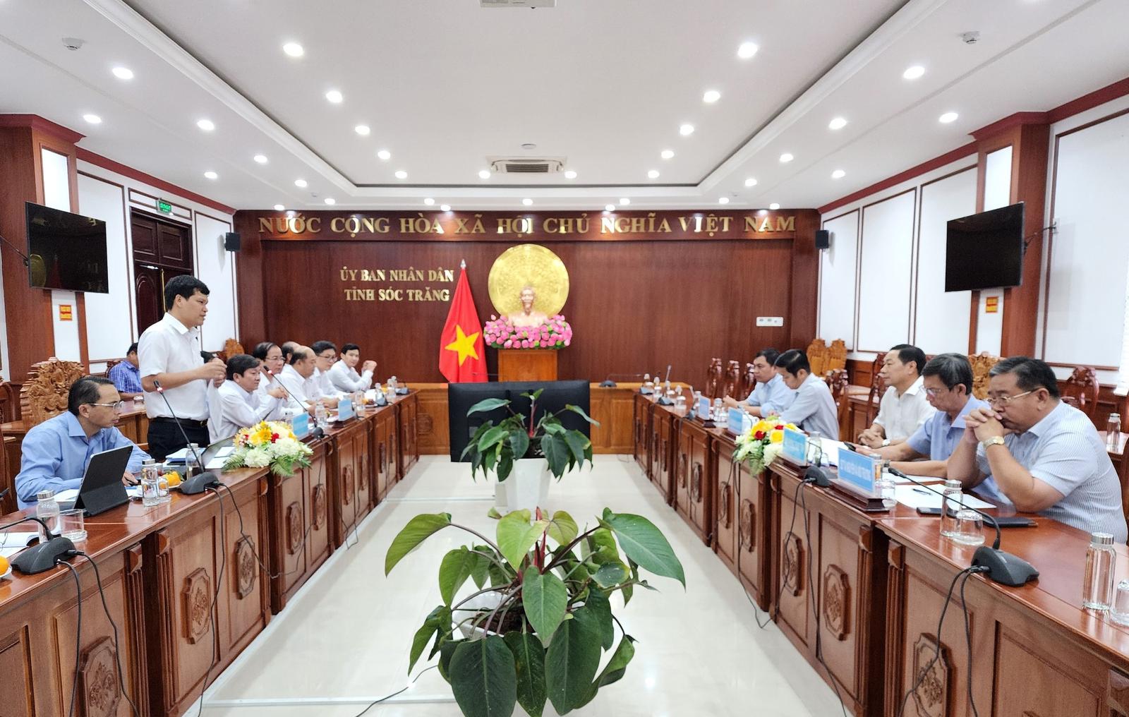 Làm việc với UBND tỉnh Sóc Trăng về hình hình cung cấp điện mùa khô và triển khai các chương trình tiết kiệm điện năm 2024. Ảnh: EVNSPC