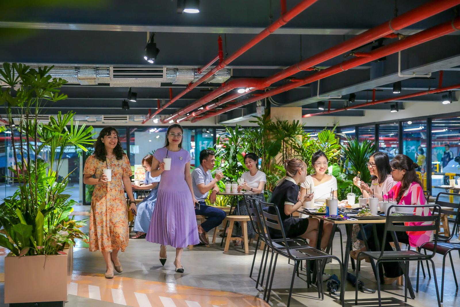 Thỏa lòng du khách, khu ẩm thực Food Village tại nhà gửi xe Tân Sơn Nhất mở ra không gian rộng rãi hiện đại, màu sắc tươi sáng, ấm áp. Quán trang trí nhiều mảng xanh mát mắt, nội thất tối giản nhưng sử dụng các nhóm bàn ghế với chất liệu, màu sắc khác nhau khiến mỗi góc nhỏ của Food Village dường như đều có thể chụp được bức ảnh check in lung linh