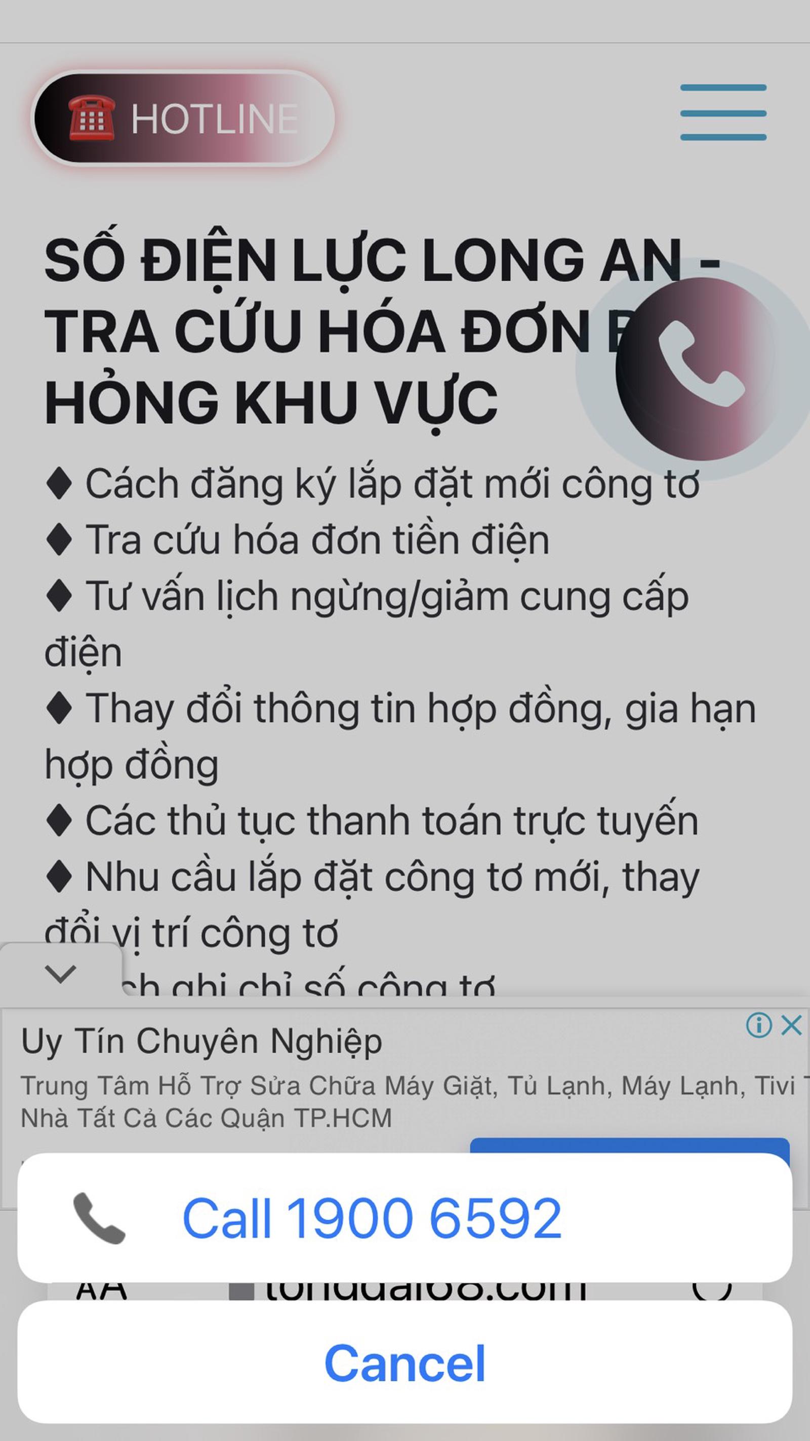 Thông tin quảng cáo giả mạo xuất hiện trên mạng xã hội: Số điện thoại Điện lực Long An – Tra cứu hóa đơn, Báo hỏng khu vực – 19006592