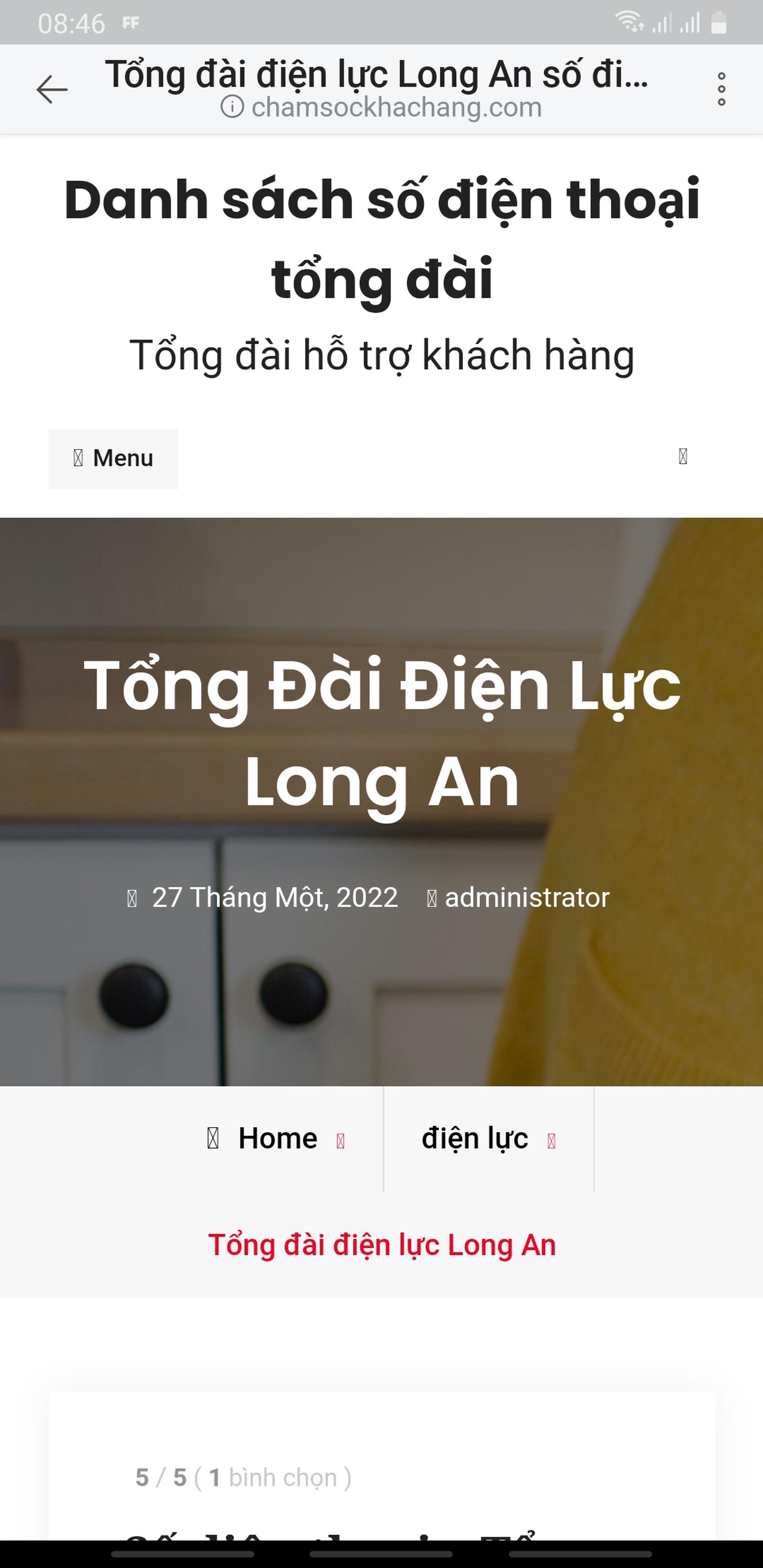 Giao diện trang Web chăm sóc khách hàng giả mạo Tổng đài điện lực Long An
