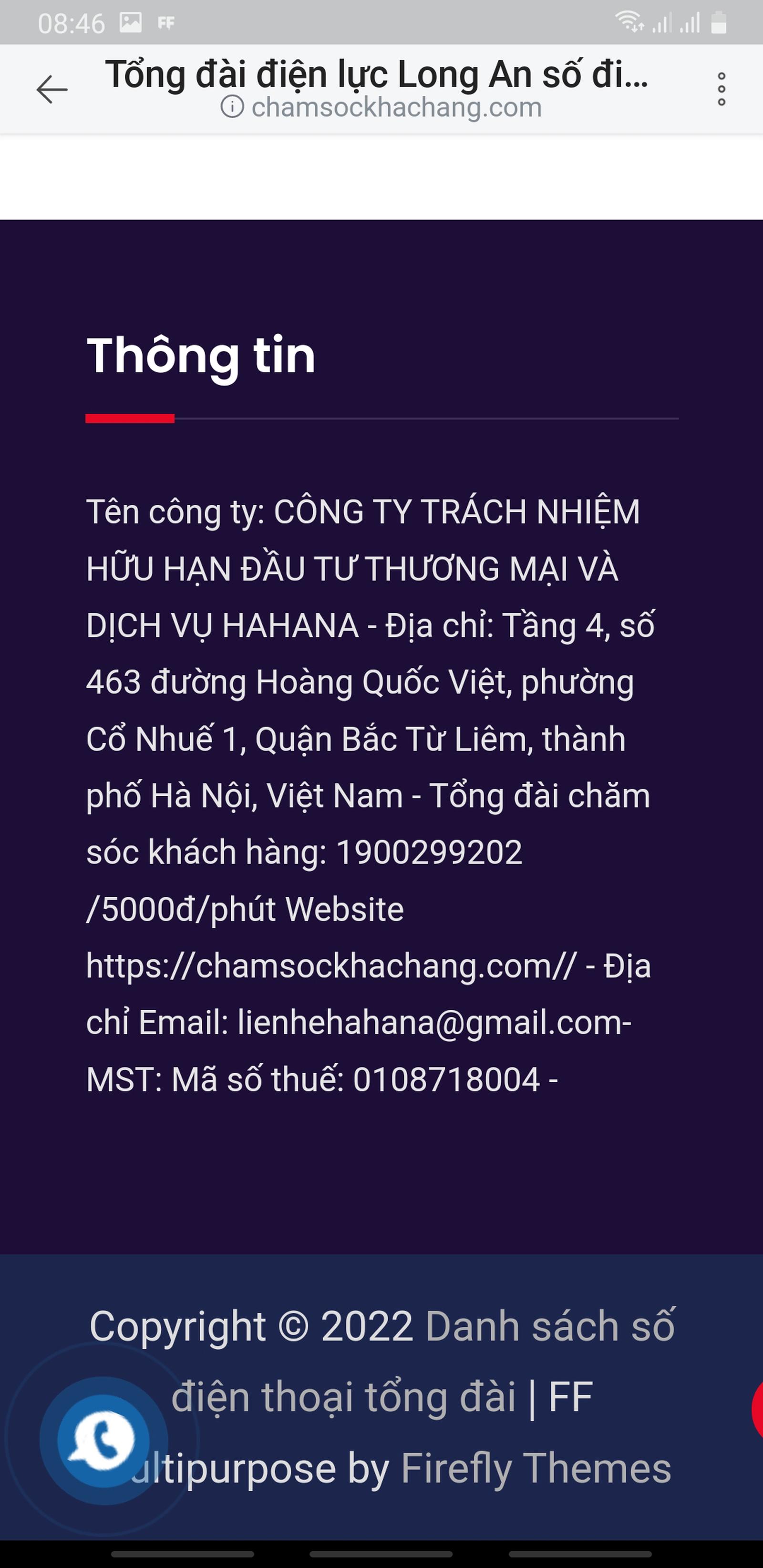 Thông tin liên hệ đến đơn vị vận hành trang Web giả mạo ngành Điện có địa chỉ tại Hà Nội