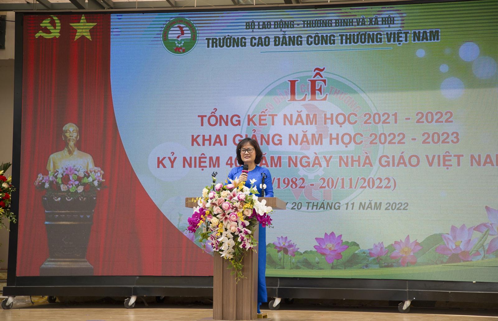Phát biểu tại buổi lễ, PGS. TS. Nguyễn Thị Việt Hương đánh giá cao những nỗ lực của nhà trường trong năm học 2021 - 2022: “Trường Cao đẳng Công thương Việt Nam đã đạt được nhiều thành tích quan trọng cả về quy mô, số lượng tuyển sinh, chất lượng đào tạo và phát triển cơ sở vật chất. Nhà trường đã tăng cường công tác tuyển sinh, gắn kết nhà trường với doanh nghiệp; gắn kết đào tạo với yêu cầu của thị trường lao động và gắn kết tuyển sinh với tuyển dụng. Tôi tin tưởng trong thời gian tới, trường Cao đẳng Công thương Việt Nam sẽ tiếp tục phát triển với những bước đi vững chắc hơn nữa”.