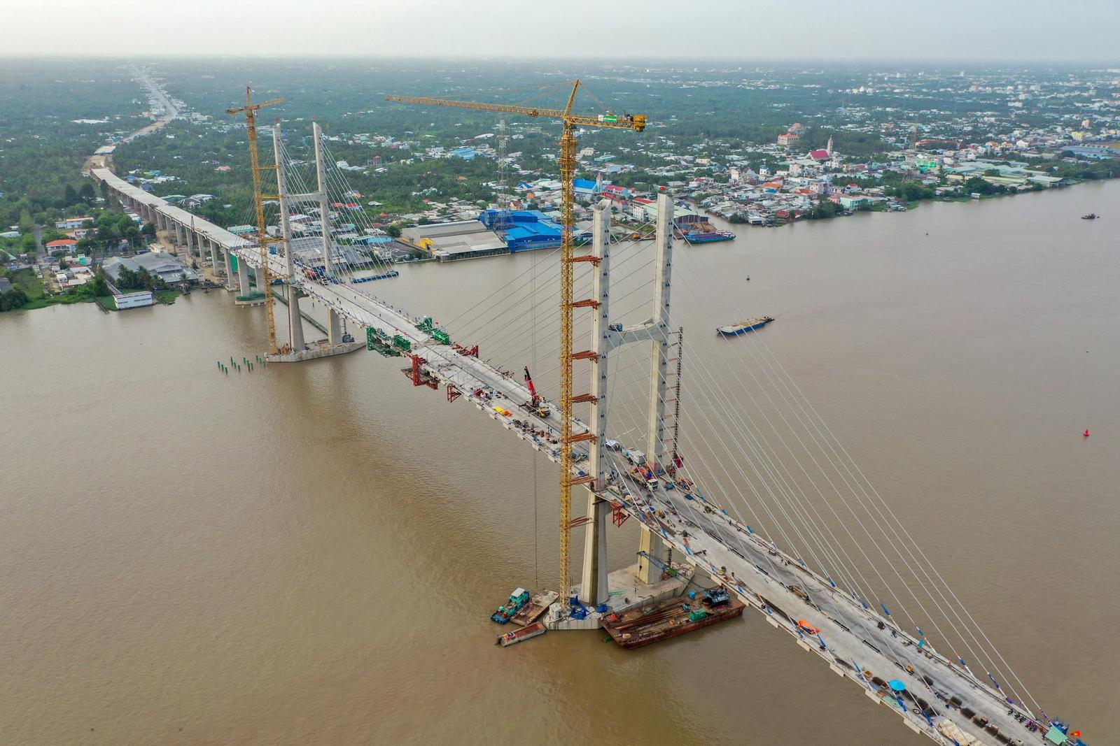 Ở khu vực Đồng bằng sông Cửu Long, cầu Rạch Miễu 2 – công trình giao thông huyết mạch nối Tiền Giang và Bến Tre - chính thức hợp long vào ngày 19/4, sớm hơn kế hoạch 4 tháng. Dự án được thi công từ tháng 3/2023, dự kiến hoàn thành vào tháng 5/2025, nhưng nhờ tổ chức thi công bài bản, thần tốc cùng sự chỉ đạo quyết liệt, các mốc tiến độ liên tục được rút ngắn.