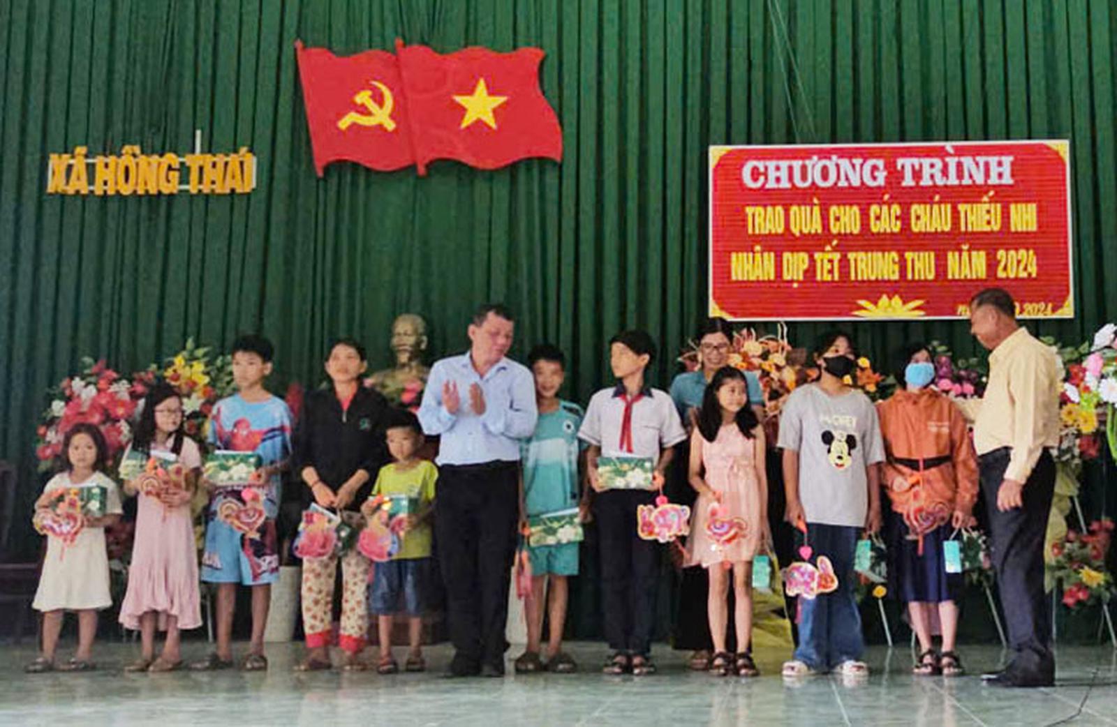 Tại đây, Ban Tổ chức đã tặng 150 phần quà cho các cháu thiếu niên, nhi đồng thuộc hộ nghèo, cận nghèo, khó khăn và bảo trợ xã hội trên địa bàn xã Hồng Thái.