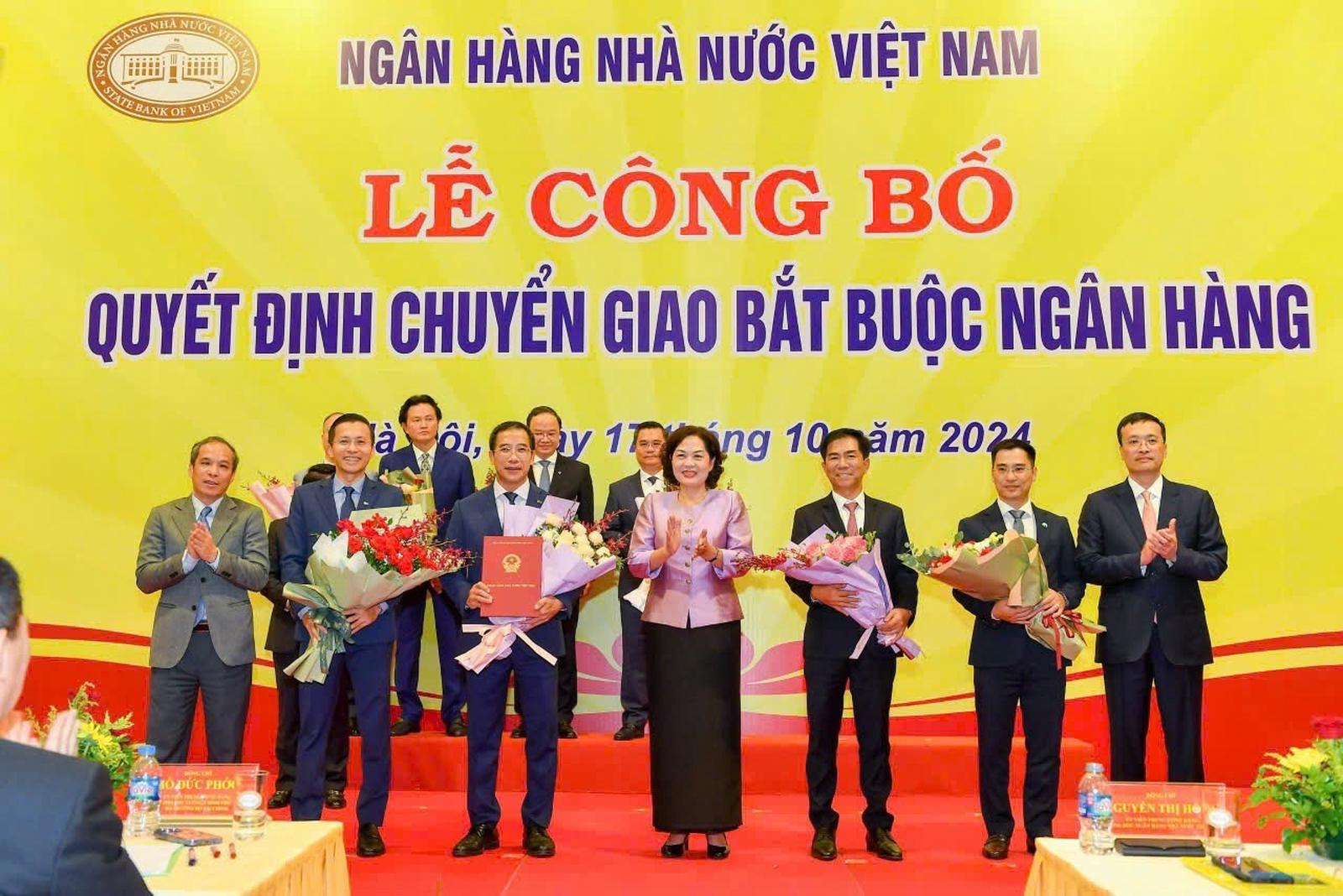 Thống đốc NHNN Nguyễn Thị Hồng trao quyết định về việc chuyển giao bắt buộc OceanBank cho MB cho ông Lưu Trung Thái - Chủ tịch HĐQT MB