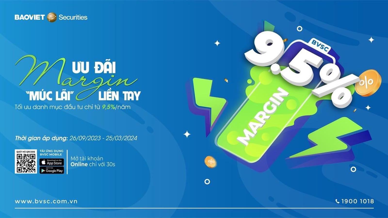 Nhằm hỗ trợ nhà đầu tư mới gia nhập thị trường, BVSC đã triển khai chương trình ưu đãi lãi suất margin chỉ 8%/năm dành cho khách hàng mở mới tài khoản từ nay tới hết năm 2023. Đây là một trong những chương trình ưu đãi lãi suất margin hấp dẫn nhất trên thị trường chứng khoán Việt Nam hiện tại. Với mức lãi suất ưu đãi này, nhà đầu tư có thể tận dụng đòn bẩy tài chính để gia tăng lợi nhuận đầu tư, đồng thời giảm thiểu chi phí giao dịch. Bên cạnh đó, chương trình "Margin ưu đãi, múc lãi liền tay" vẫn đang triển khai dành cho các khách hàng hiện hữu của BVSC với mức ưu đãi lãi suất margin từ 9,5%. BVSC cho biết, các hoạt động trên thể hiện nỗ lực của công ty trong việc mang lại những giá trị tốt đẹp cho cộng đồng và hỗ trợ nhà đầu tư trong bối cảnh thị trường chứng khoán nhiều biến động.