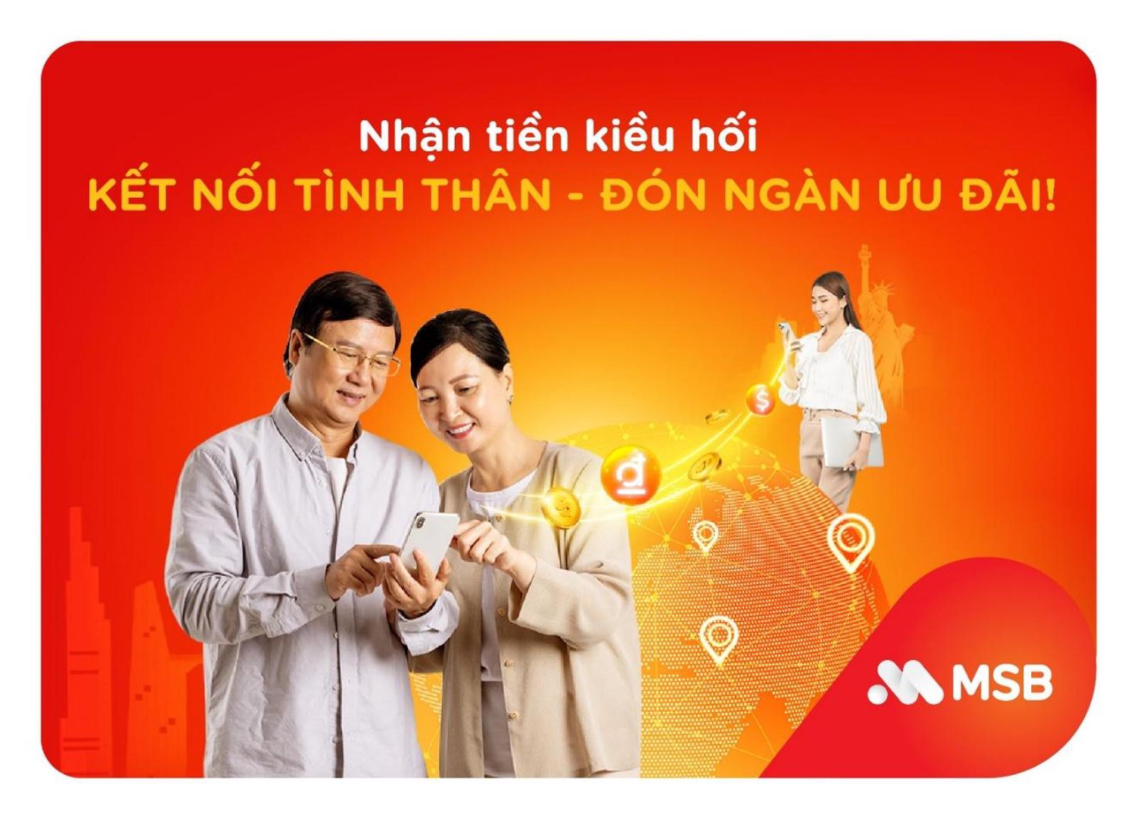 Để nhận tiền kiều hối vào tài khoản thanh toán tại MSB qua kênh SWIFT, người thân ở Việt Nam chỉ cần mở tài khoản tại MSB và cung cấp số tài khoản cùng mã Swift code của MSB cho người chuyển ở nước ngoài. Người chuyển đến một ngân hàng ở nước ngoài để thực hiện chuyển tiền. Ngoài ra, MSB còn hợp tác với nhiều công ty chuyển tiền hàng đầu thế giới như Western Union, RIA… để cung cấp dịch vụ chi trả tiền cho người nhận tại Việt Nam. Các đối tác này đều có mạng lưới điểm giao dịch tại hầu hết quốc gia trên thế giới, tạo sự thuận tiện cho khách hàng khi có nhu cầu gửi tiền kiều hối về Việt Nam.